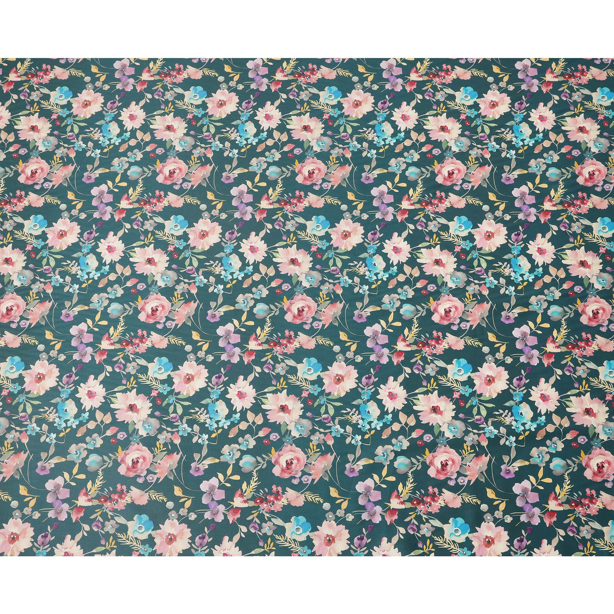 Teal Green Multicolor Floral Print Pure Cotton Satin Fabric, 140 Cms Width, Made in India-D26029