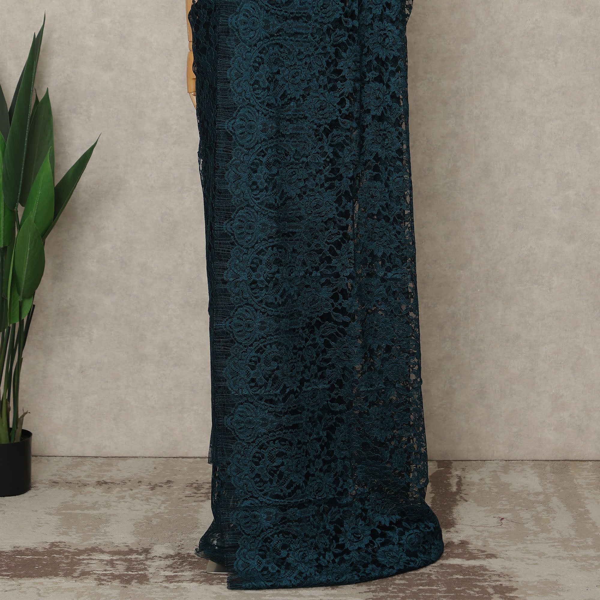 Teal Premium French Chantilly Saree Lace, 5.5 Mtrs Length, 110 Cms Width, Crafted in France -Blouse Not Included-D26710