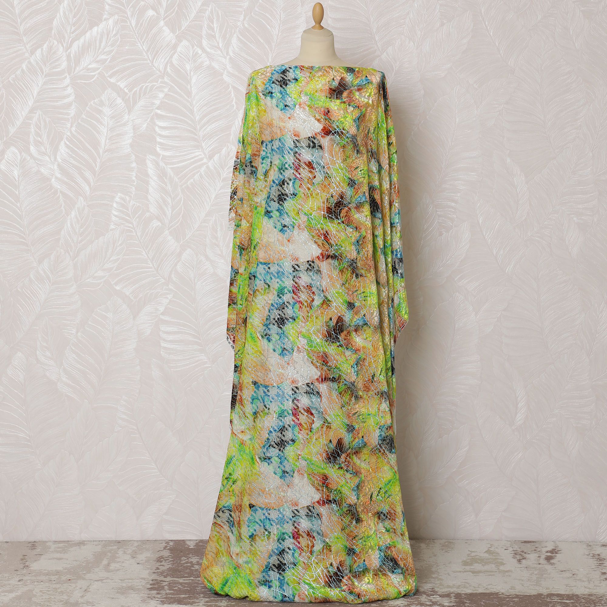 Tropical Mirage Silk Chiffon Velvet Dirac Fabric - 140cm Wide - Vibrant South Korean Artistry - 3.5 Meters Piece -D18298