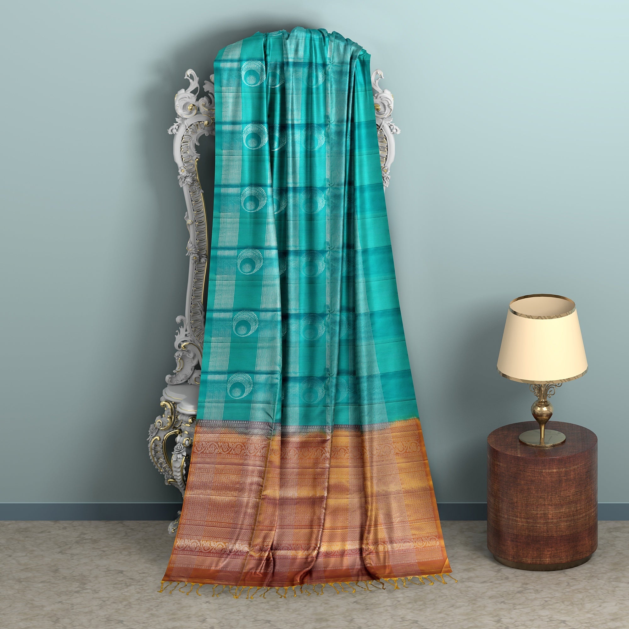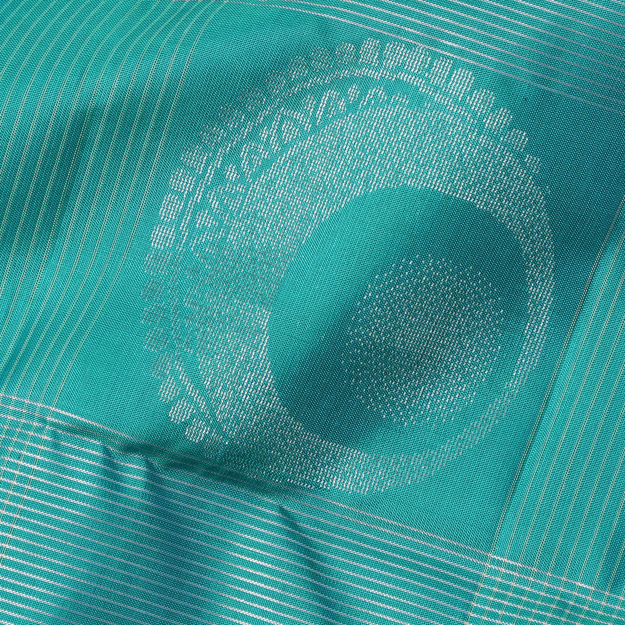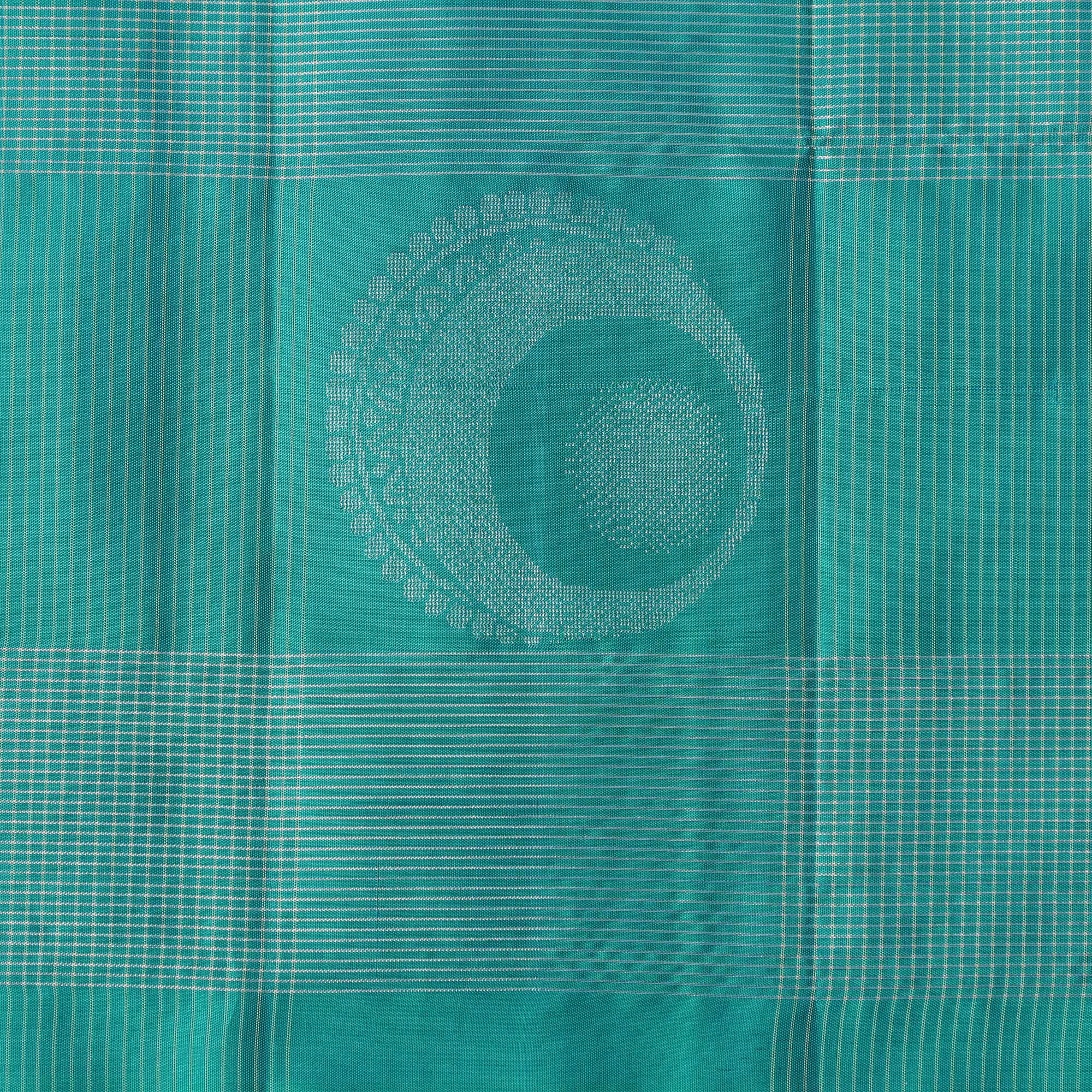 Vibrant turquoise green base with detailed checked butta motifs