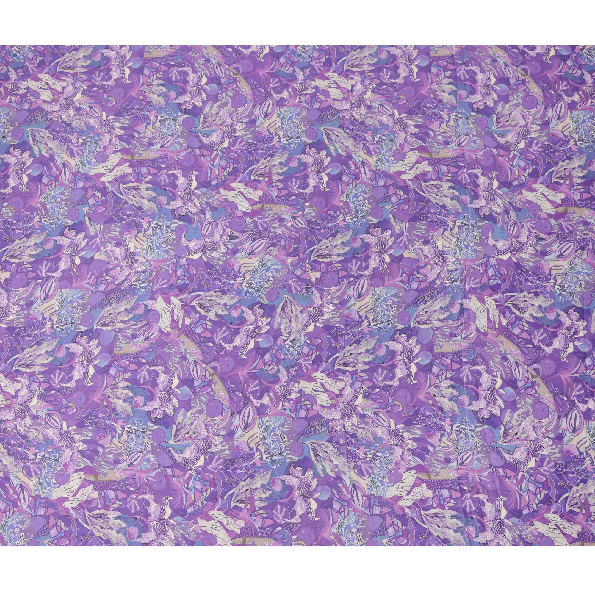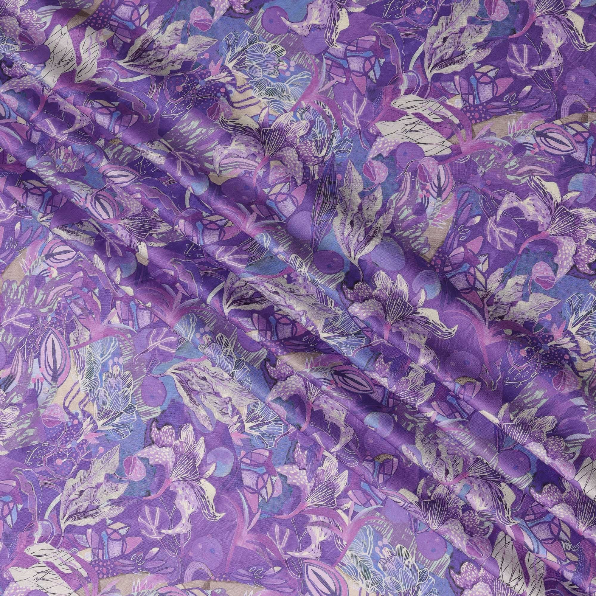 Violet Abstract Botanical Print Viscose Modal Satin Fabric, 110 Cms Width, Made in India-D23298
