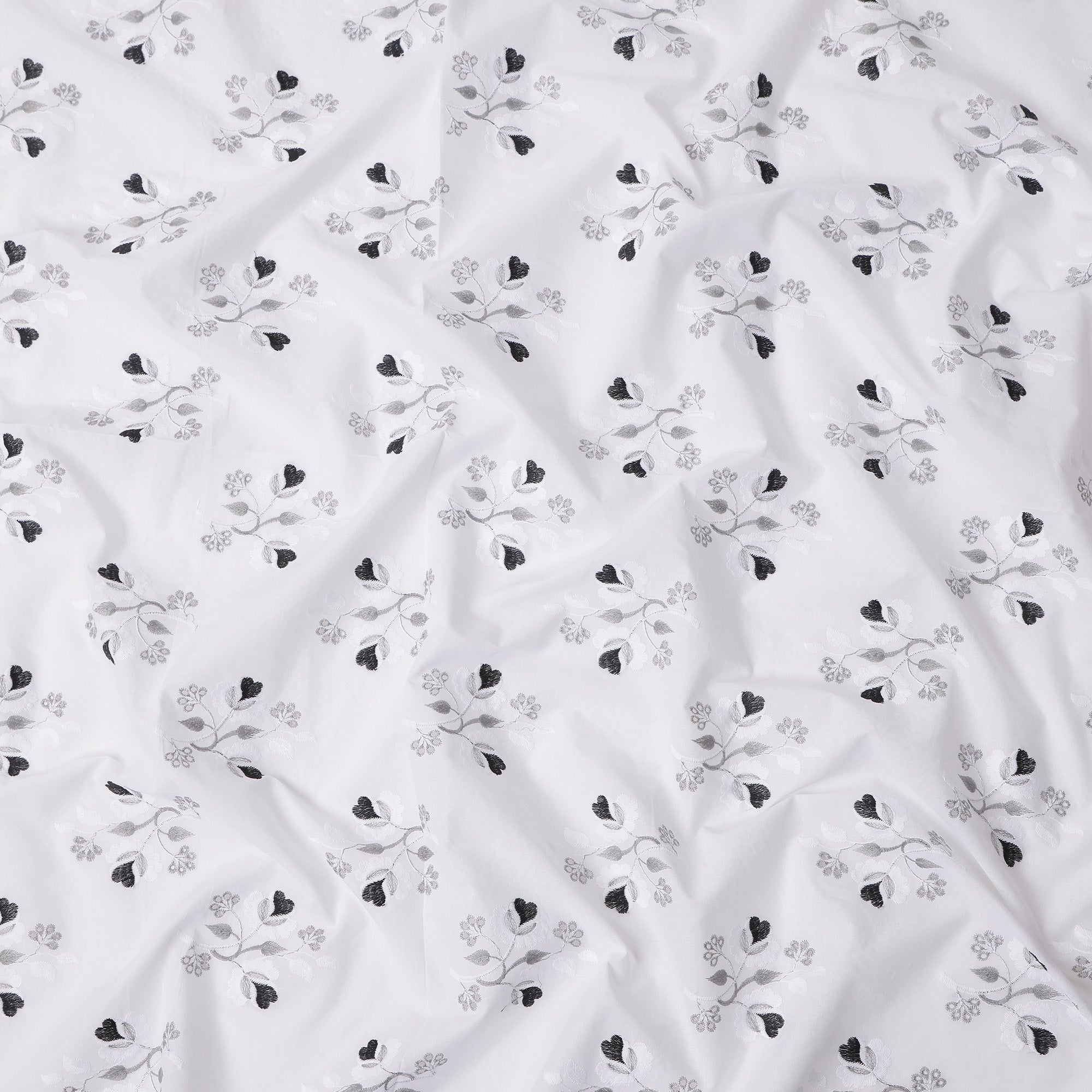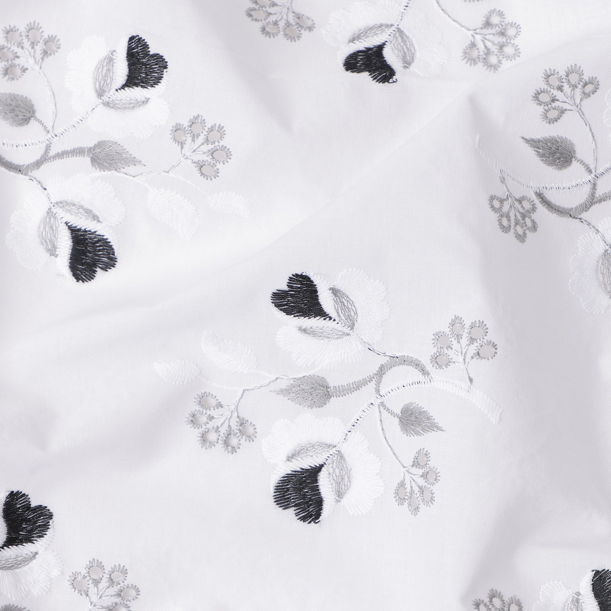 White and Black Floral Embroidered Cotton Voile Fabric, 110 Cms Width, India-D25191