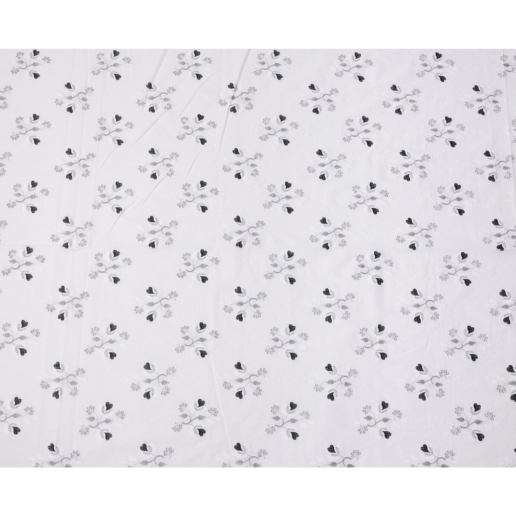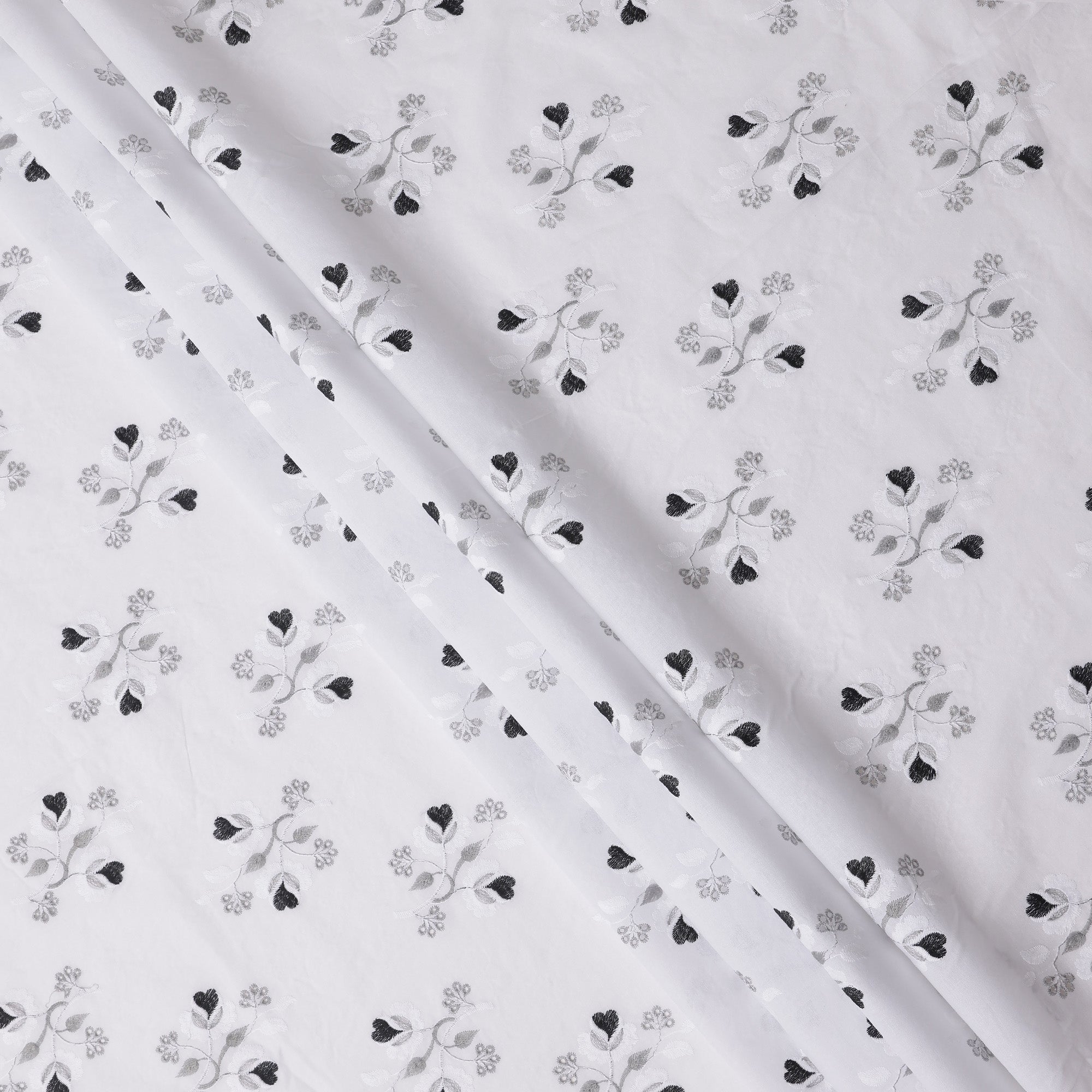 This White and Black Floral Embroidered Cotton Voile Fabric is a refined and versatile textile that blends elegance with simplicity. The crisp white base is adorned with delicate floral embroidery in black and white threads, creating a graceful contrast that enhances its charm. Made from premium cotton voile, the fabric is lightweight, breathable, and soft, offering all-day comfort and a smooth finish. Its semi-sheer texture and fluid drape make it an excellent choice for summer wear, festive attire, and contemporary fashion. With a width of 110 cms, this fabric is suitable for tailoring kurtas, sarees, dupattas, tunics, blouses, and dresses, while also serving beautifully in home décor such as curtains and table linens. Crafted in India, a country celebrated for its rich textile heritage, it showcases intricate embroidery and fine craftsmanship. To preserve its quality and embroidery detailing, gentle hand washing or dry cleaning is recommended, ensuring long-lasting durability and elegance.