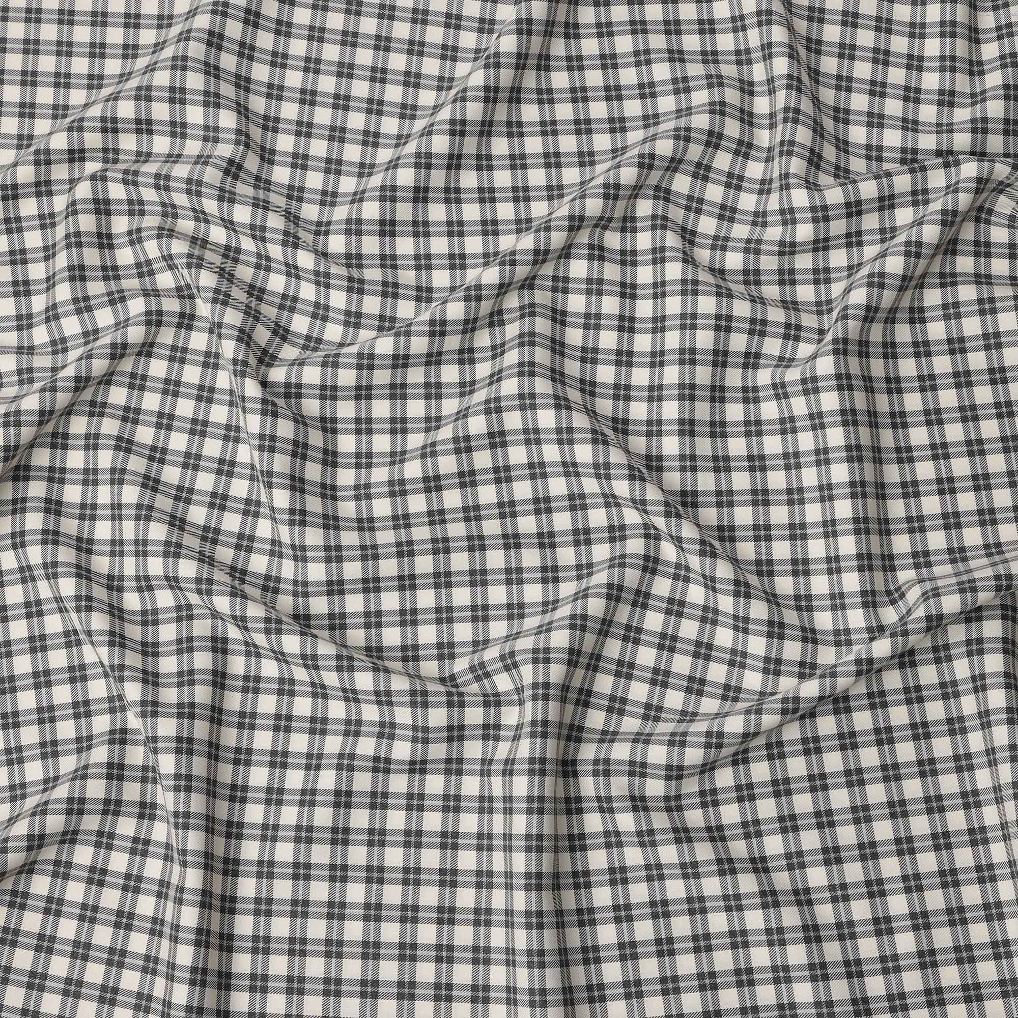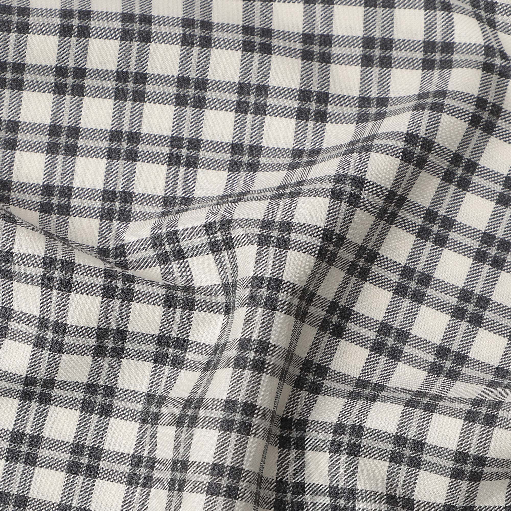 Premium cotton shirting fabric with classic white and black tartan checks.