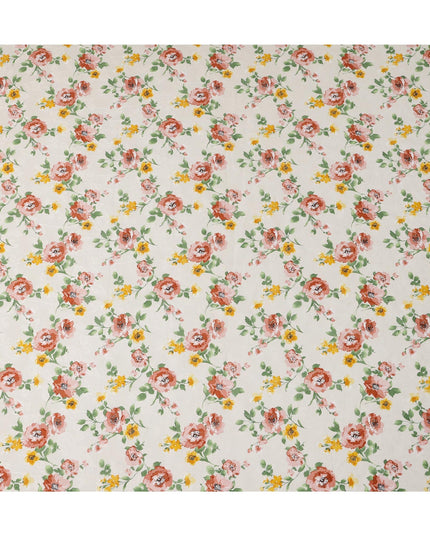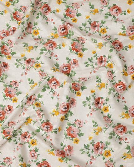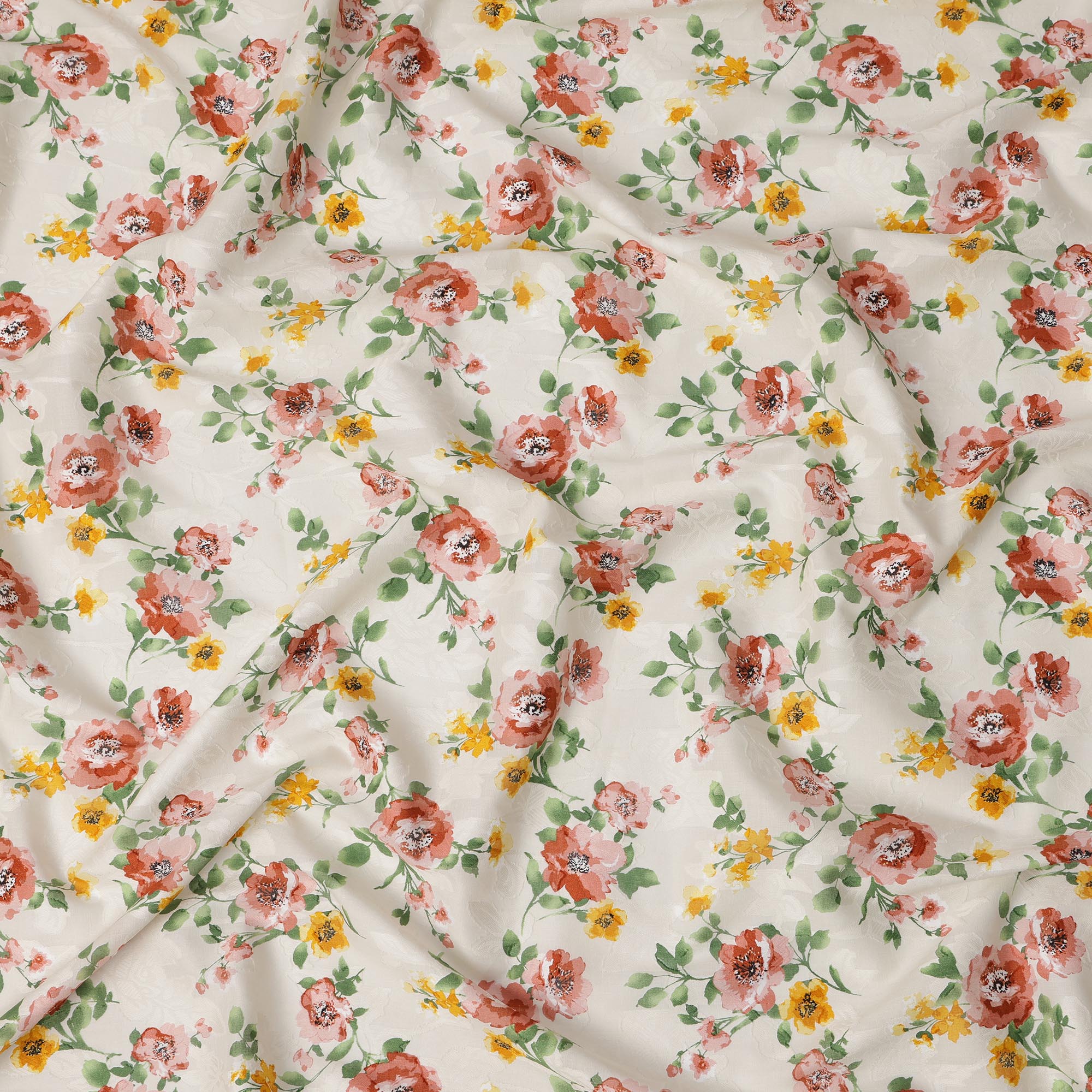 Add a touch of elegance to your projects with this white and multicolor floral Uragiri cotton voile fabric featuring a subtle jacquard pattern. The pristine white base is beautifully adorned with soft pink, yellow, and green floral designs, offering a fresh and delicate aesthetic. Made from high-quality cotton voile sourced from Japan, this fabric is lightweight, breathable, and semi-sheer, making it perfect for sewing dresses, blouses, scarves, and home décor items. With a width of 110 cm, this fabric combines the charm of jacquard with the softness of cotton, ensuring versatility and comfort for your creative endeavors.