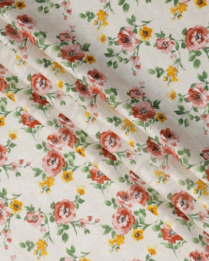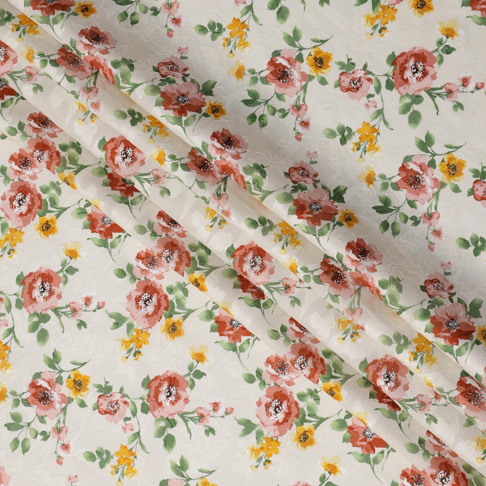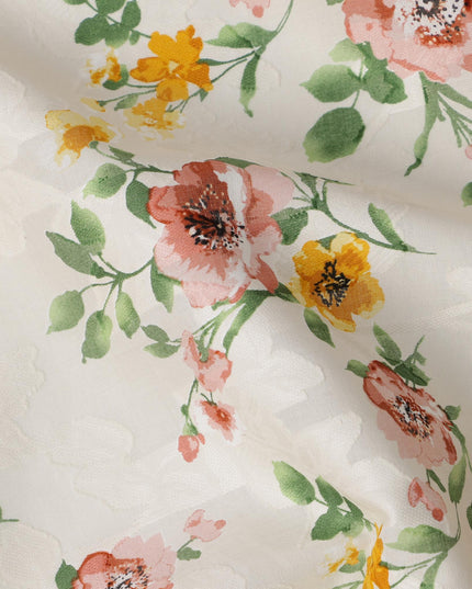 White and Multicolor Floral Uragiri Cotton Voile Fabric with Jacquard – Width 110 cm-D21795