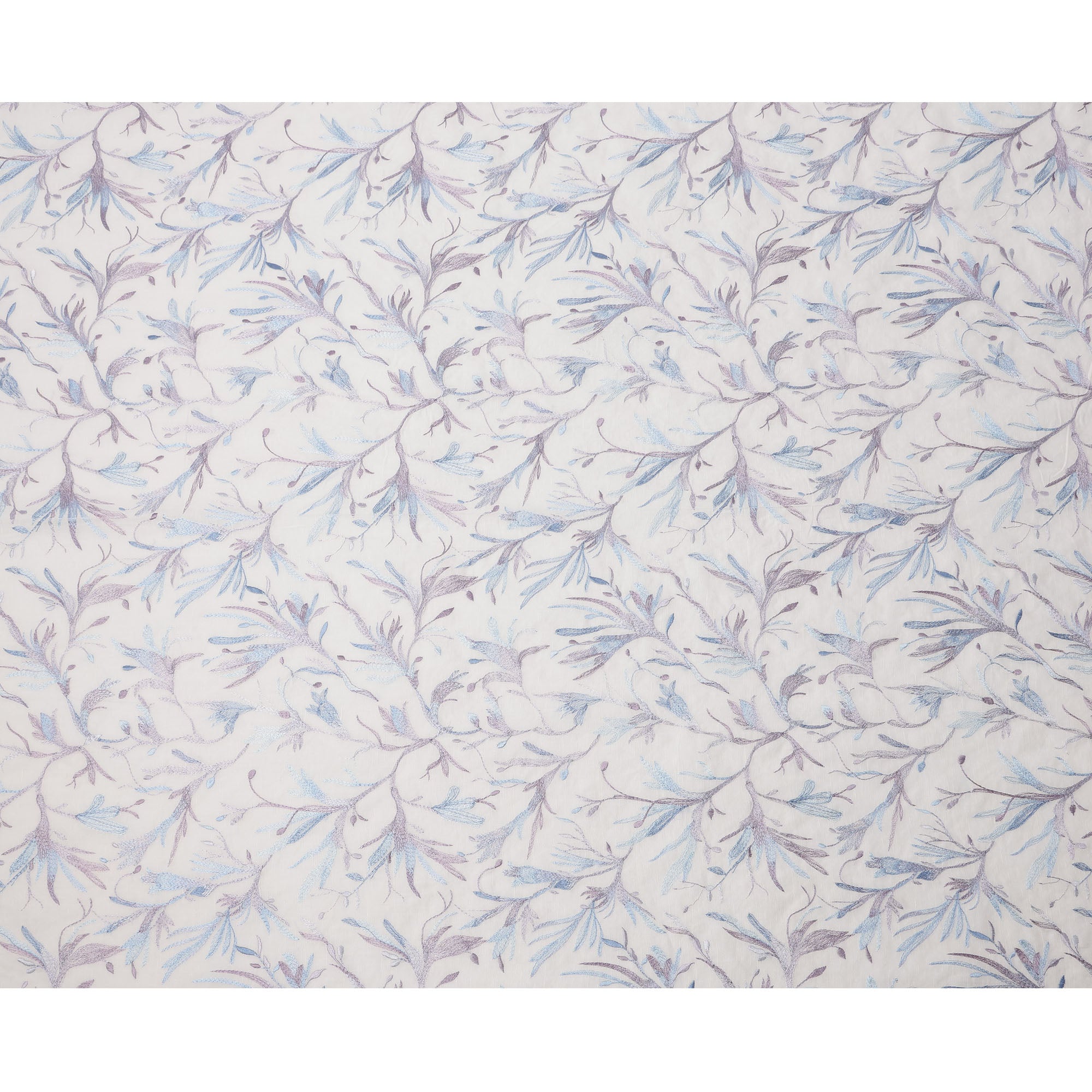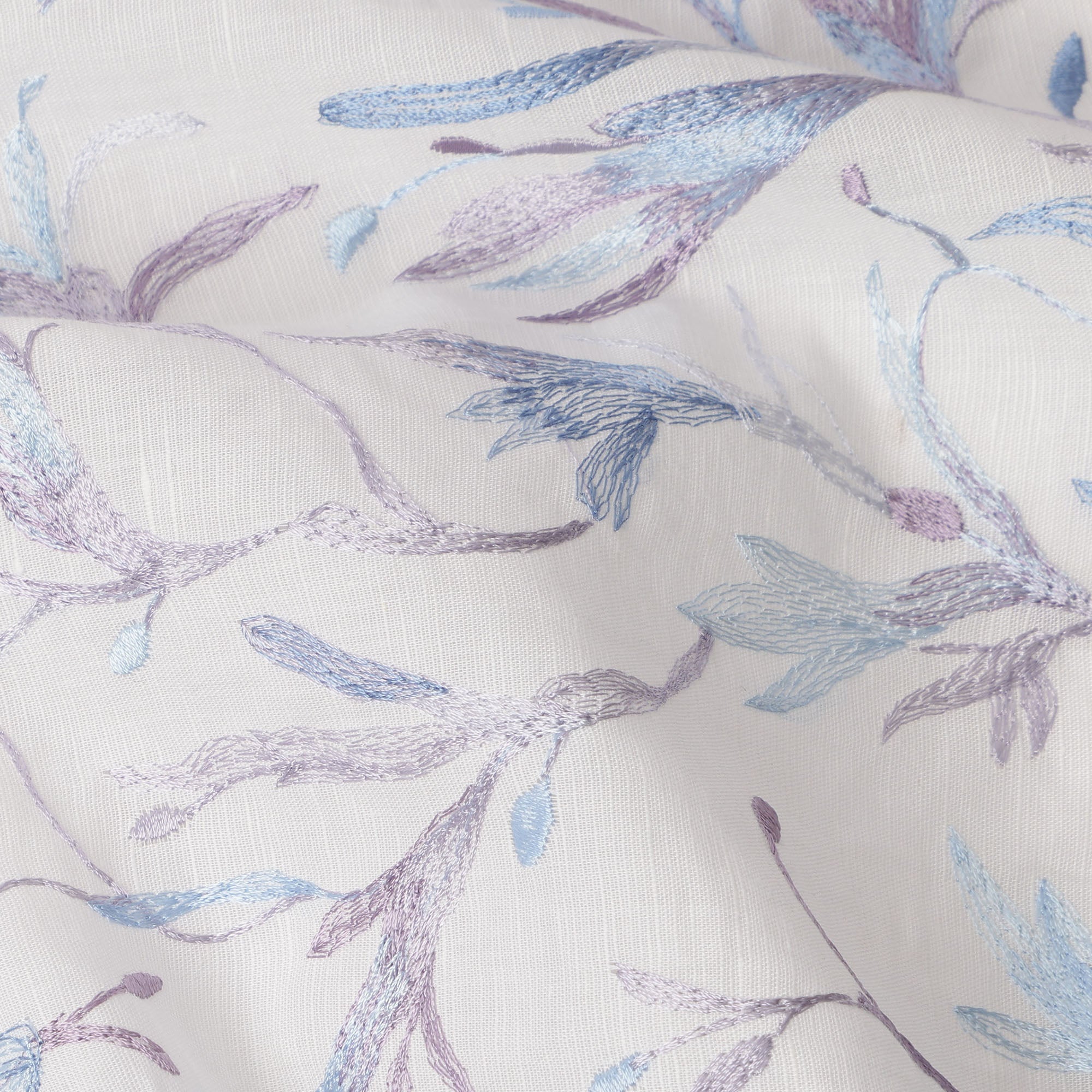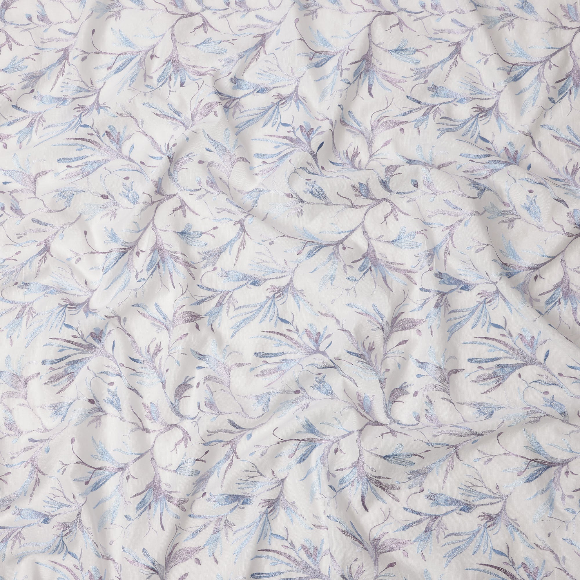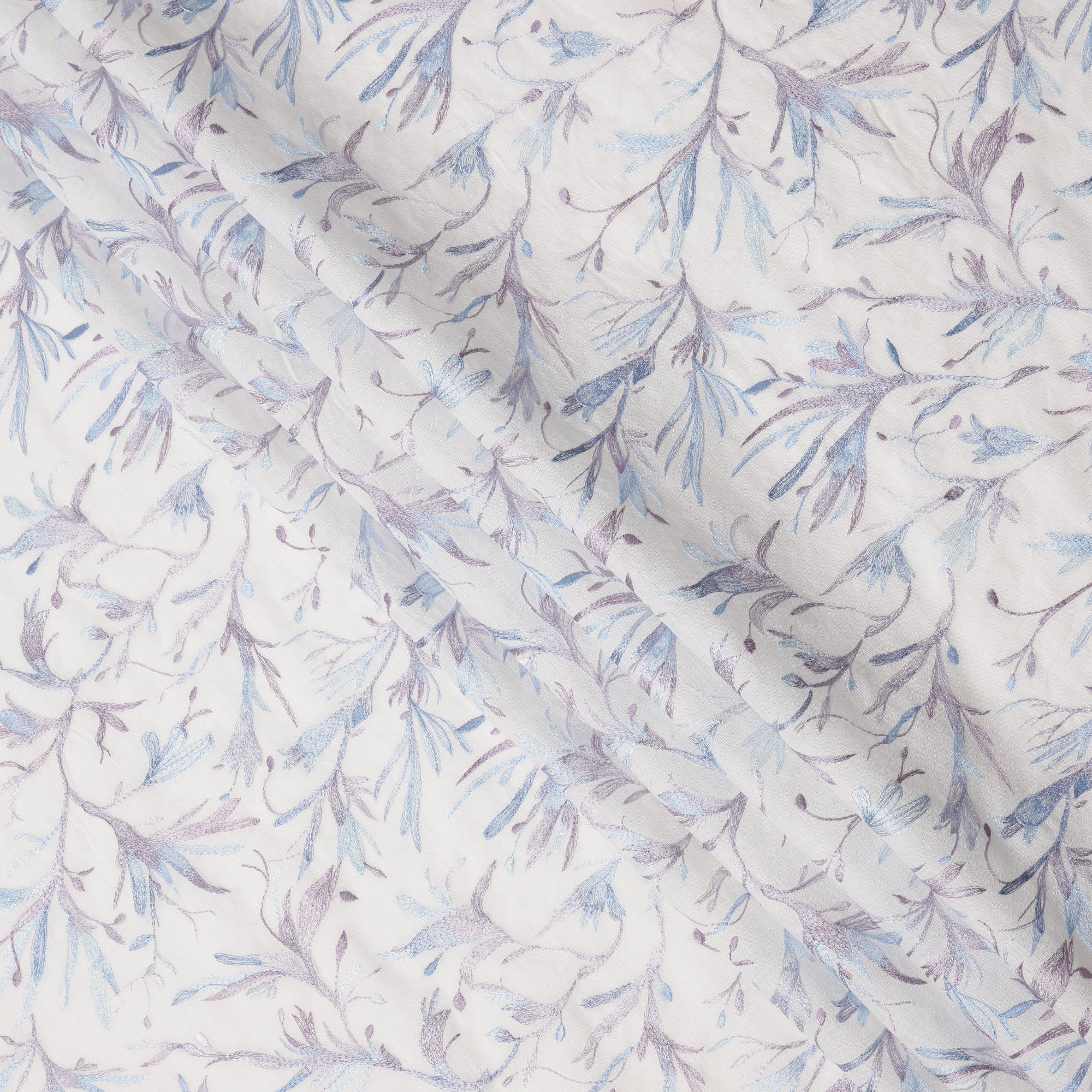 White Base Lavender and Blue Floral Leaf Embroidery Cotton Voile Fabric, 110 Cms, India-D24673