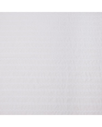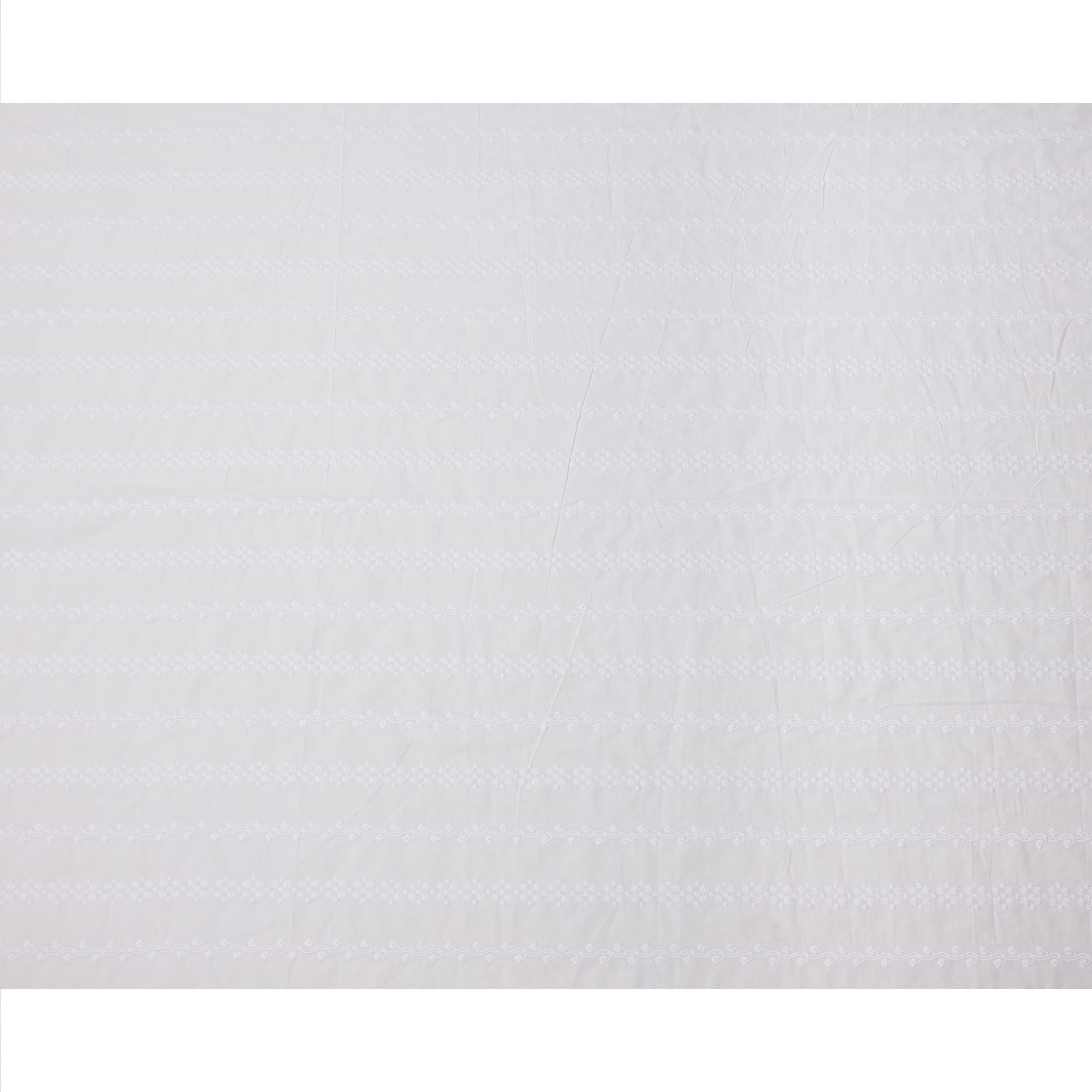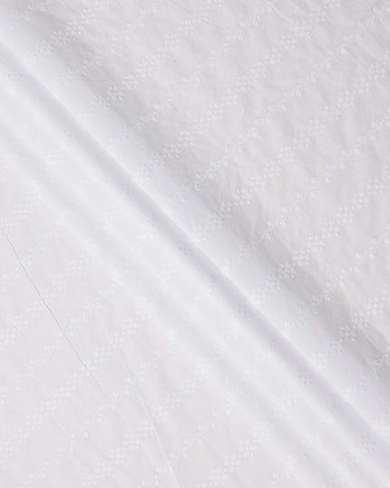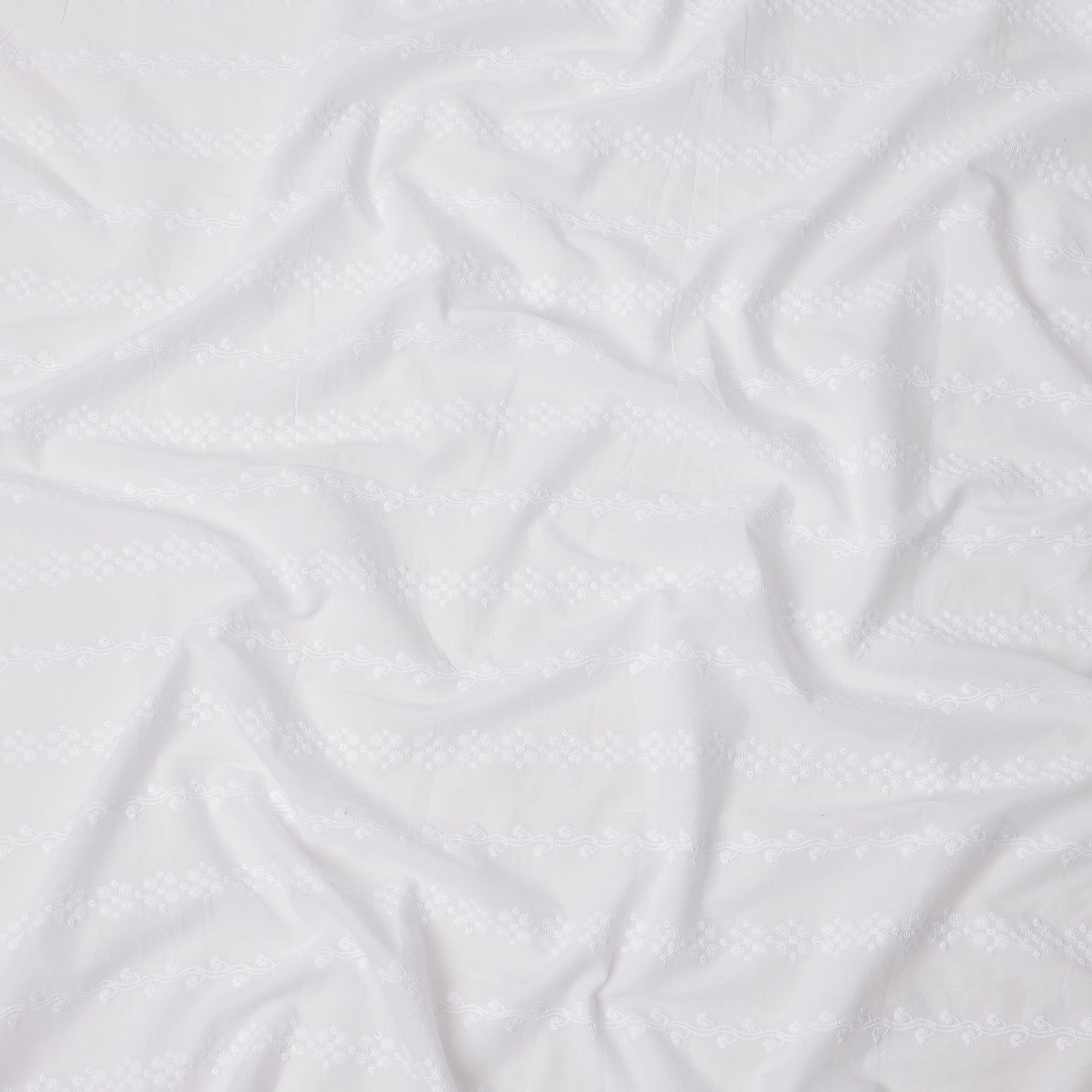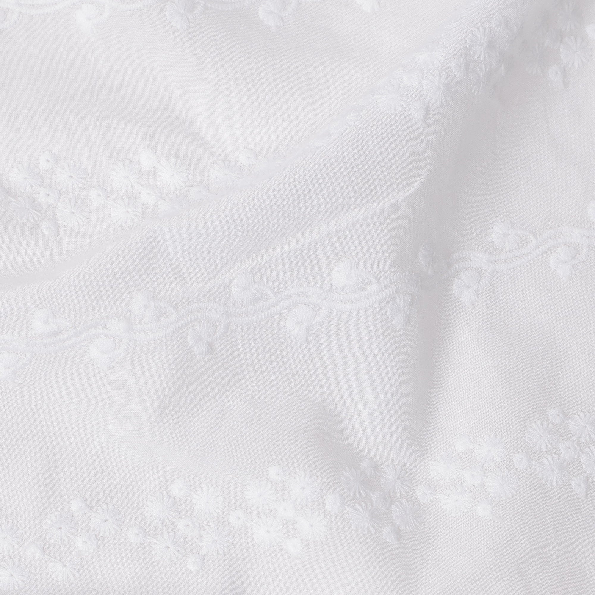 This elegant white cotton voile fabric is accentuated with delicate floral clusters and heart-shaped motif embroidery, offering an ethereal and minimal aesthetic perfect for summer fashion. Crafted with fine tonal white threads, the design balances structure and softness, giving the fabric an airy, fluid drape. Its 110 cm width provides ample space for creating breezy kurtas, chic blouses, or elegant overlays. The breathable cotton base ensures comfort for all-day wear, while the embroidery adds a handcrafted touch of Indian artistry. Ideal for both ethnic and Western silhouettes, this fabric is perfect for designers and DIY creators seeking soft sophistication. Shop online to bring refined tradition to your next creation.
