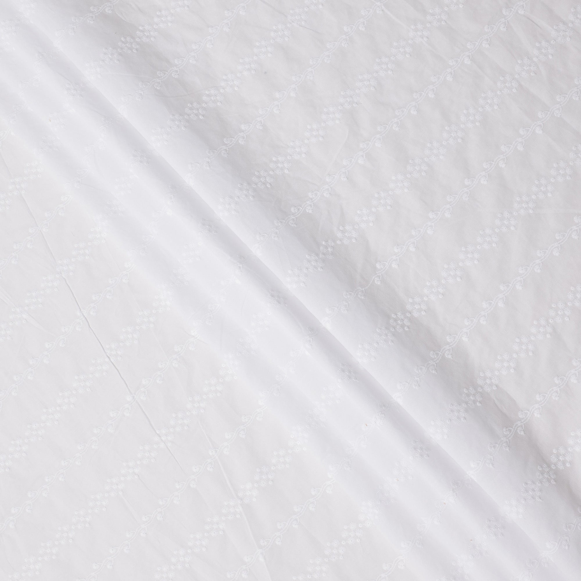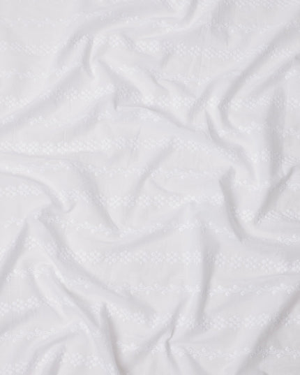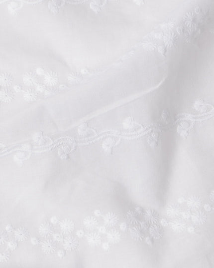 White Base with Floral and Heart Motif Embroidered Cotton Voile Fabric, Delicate Tonal Threadwork, 110 Cms Width, Made in India-D23803