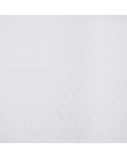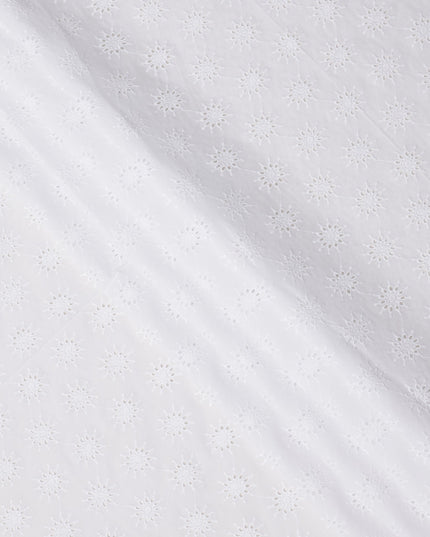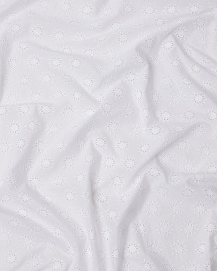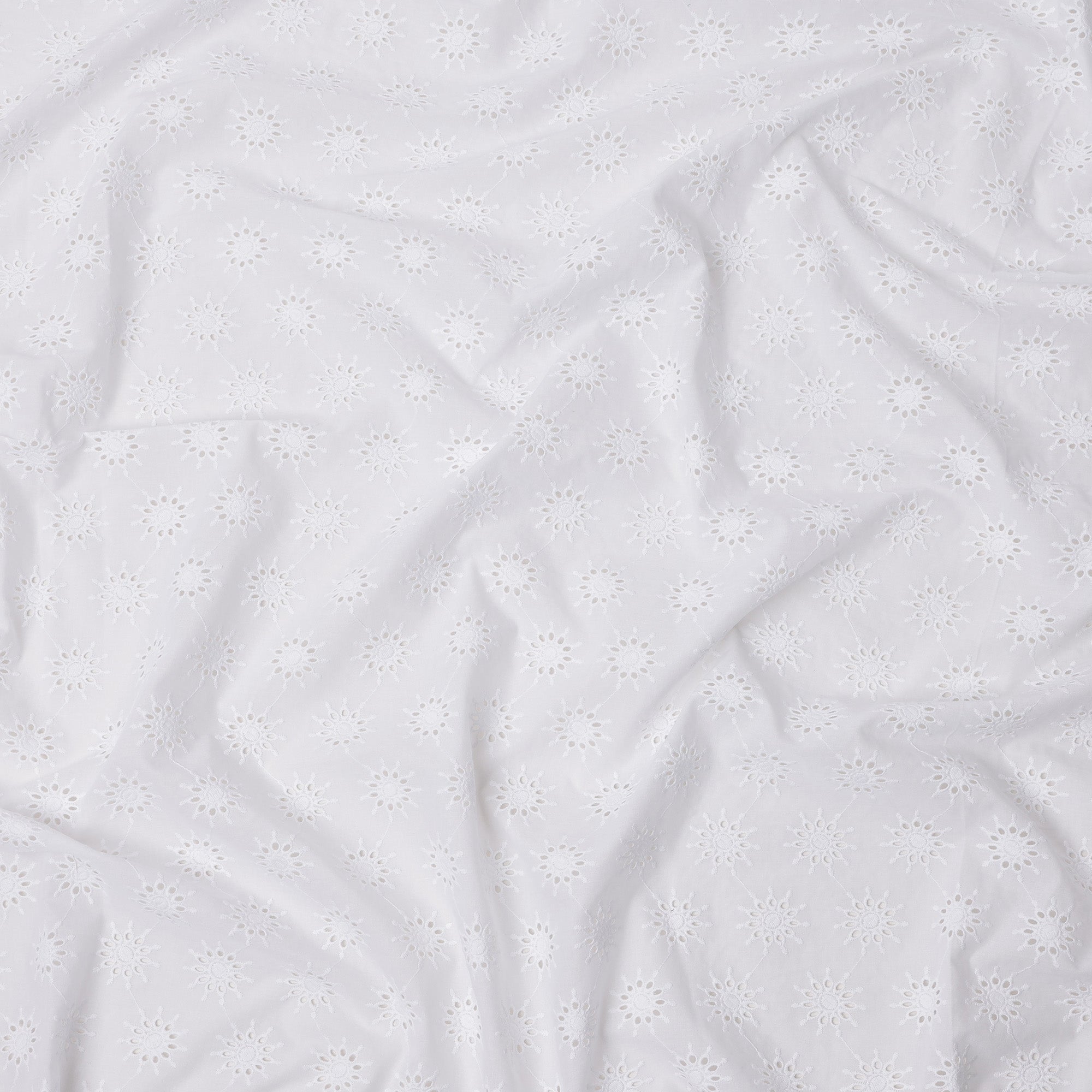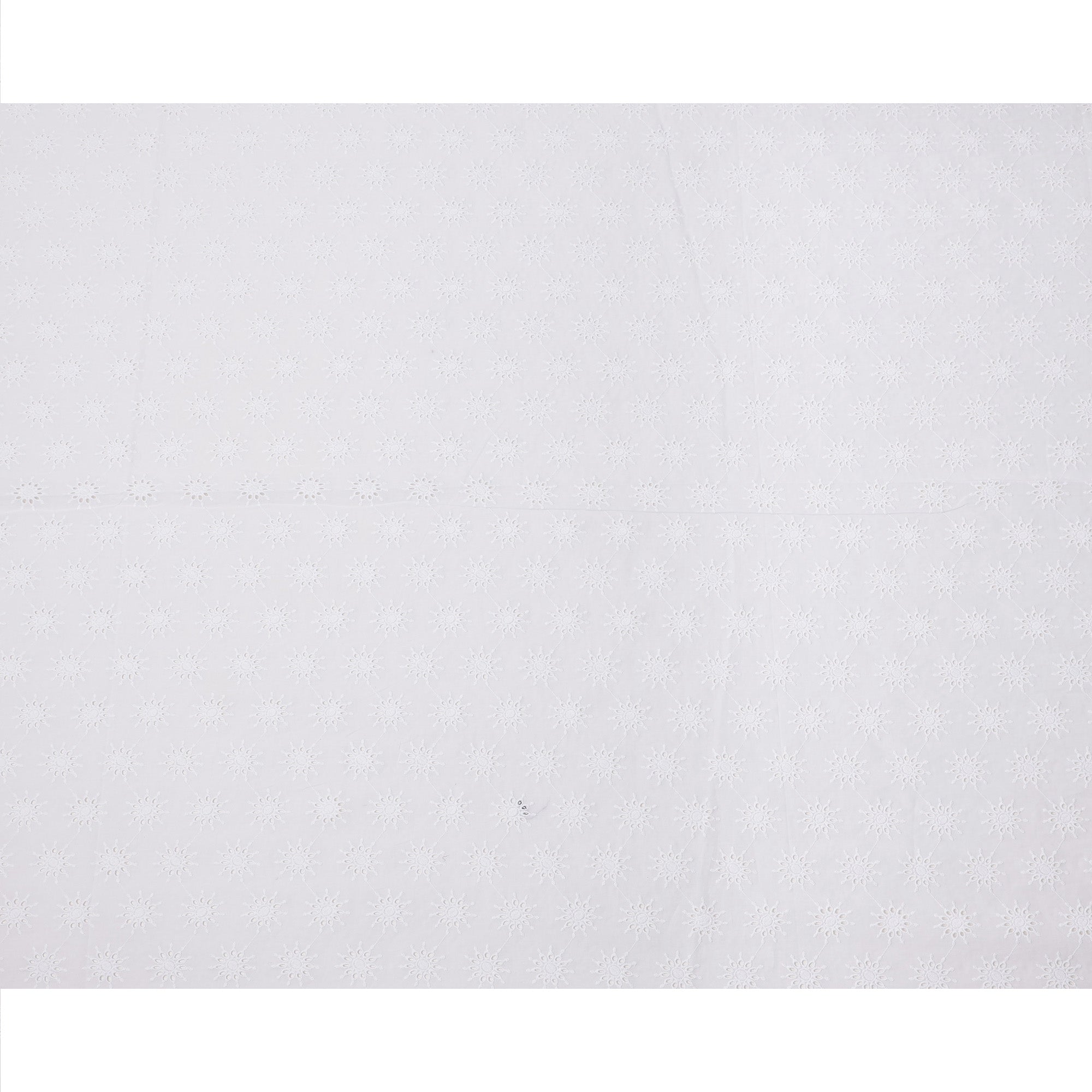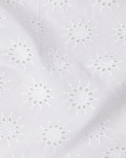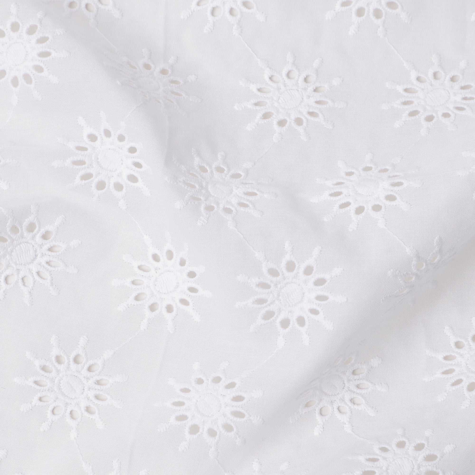 White Base with Floral Circular Eyelet Embroidery Cotton Voile Fabric, Delicate Starburst Motif Design, 110 Cms Width, Made in India-D23800