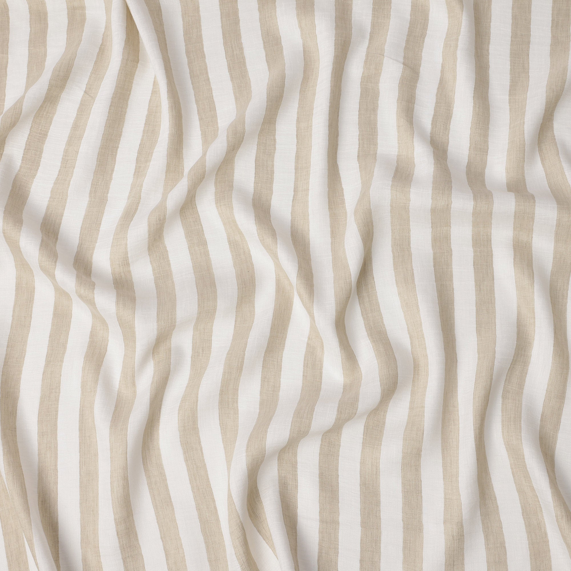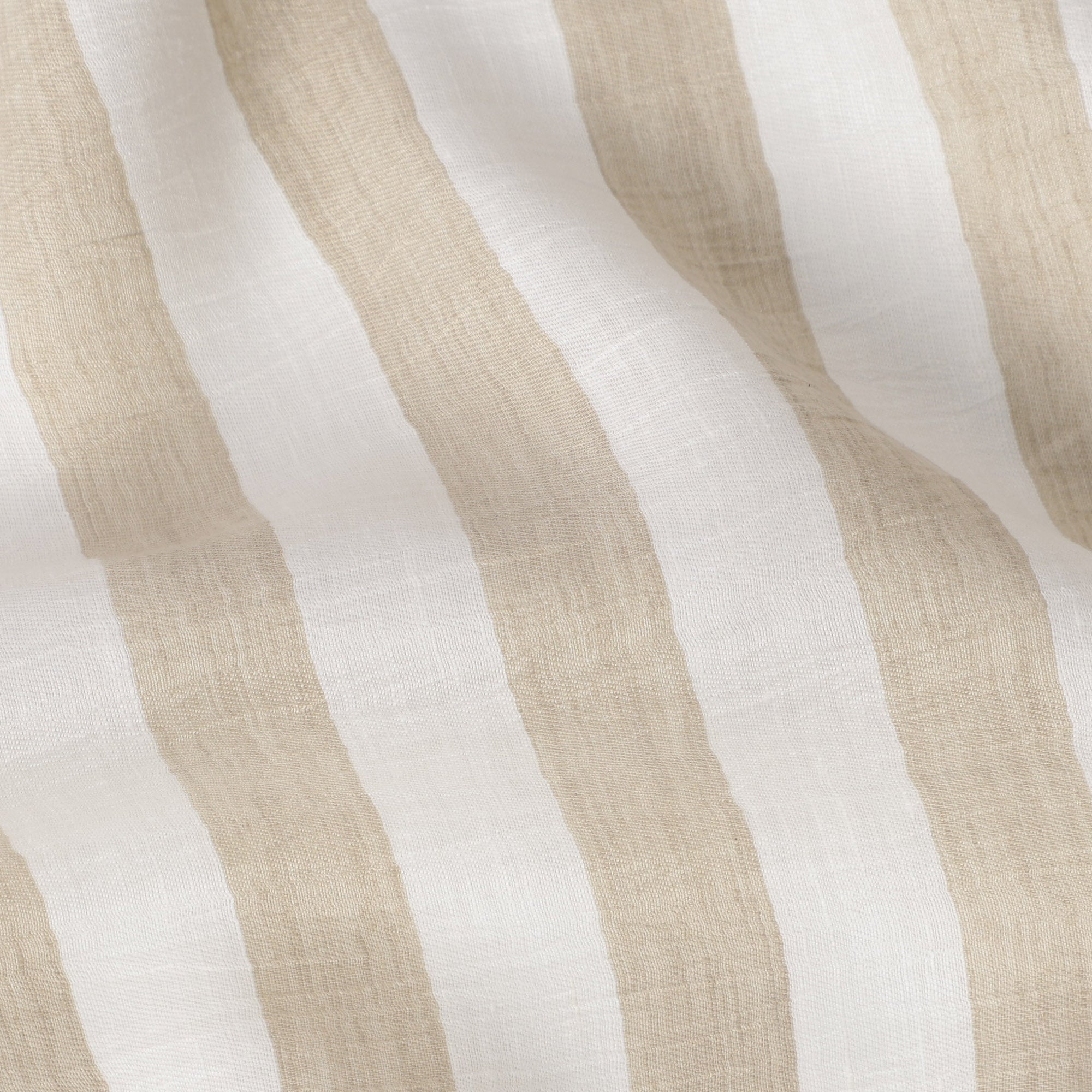 Elevate your wardrobe with this white & beige striped pure linen printed fabric, designed for a fresh and elegant look. The soft white base is adorned with flowing beige stripes, creating a timeless and sophisticated appeal, perfect for summer shirts, breezy dresses, and stylish blouses. Made in Italy from premium 60 Lea linen, this fabric is naturally breathable, lightweight, and moisture-wicking, ensuring comfort and durability in warm climates. With a 150 cm width, it provides ample fabric for versatile sewing projects, while its airy texture and graceful drape enhance its overall charm. Whether for casual wear or resort-style outfits, this Italian linen fabric is a refined and versatile choice.