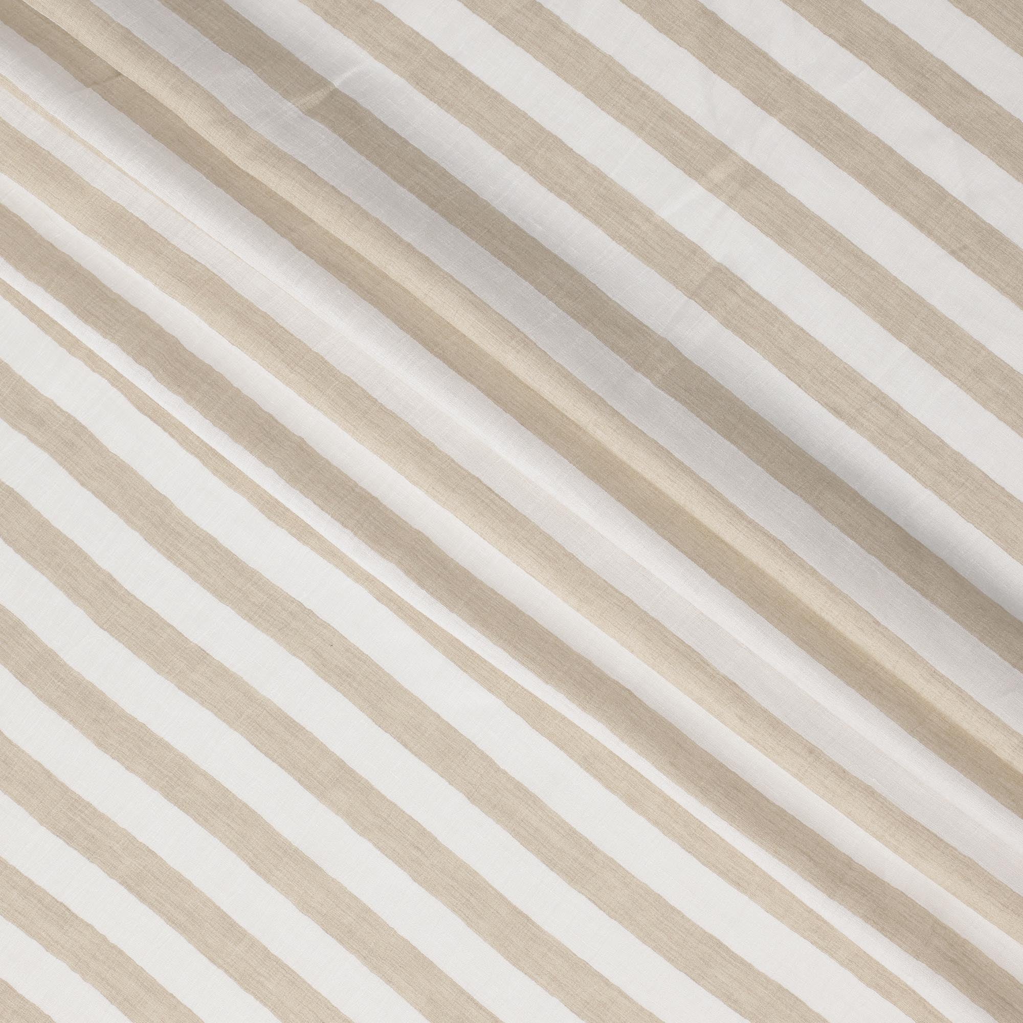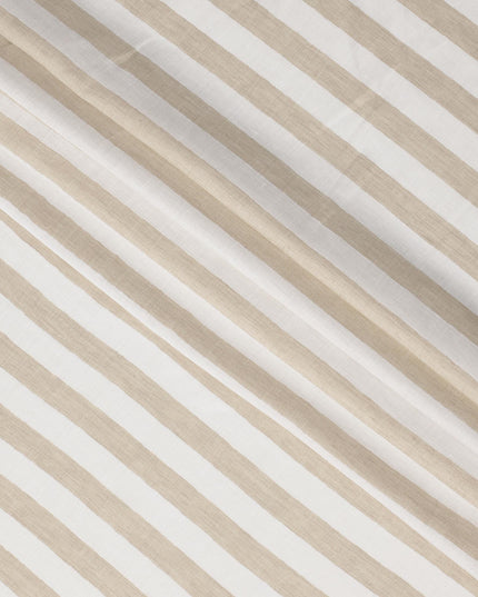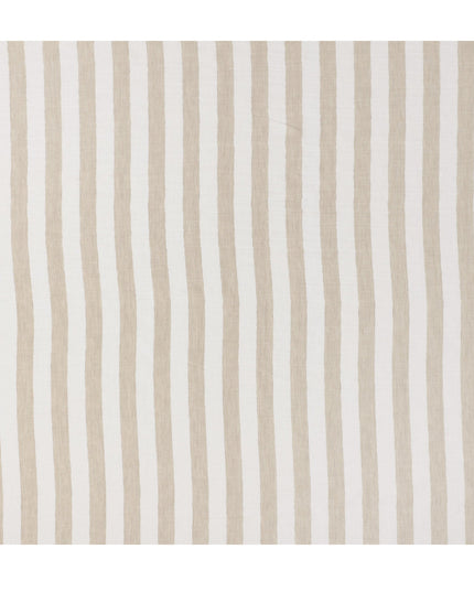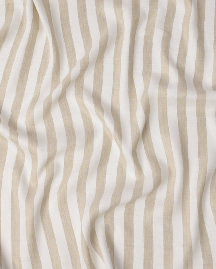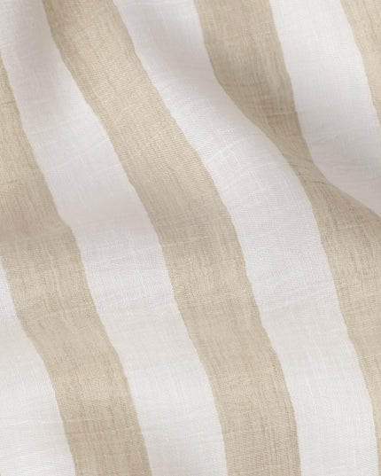 White & Beige Striped Pure Linen Printed Fabric – 150 cm Wide-D21998