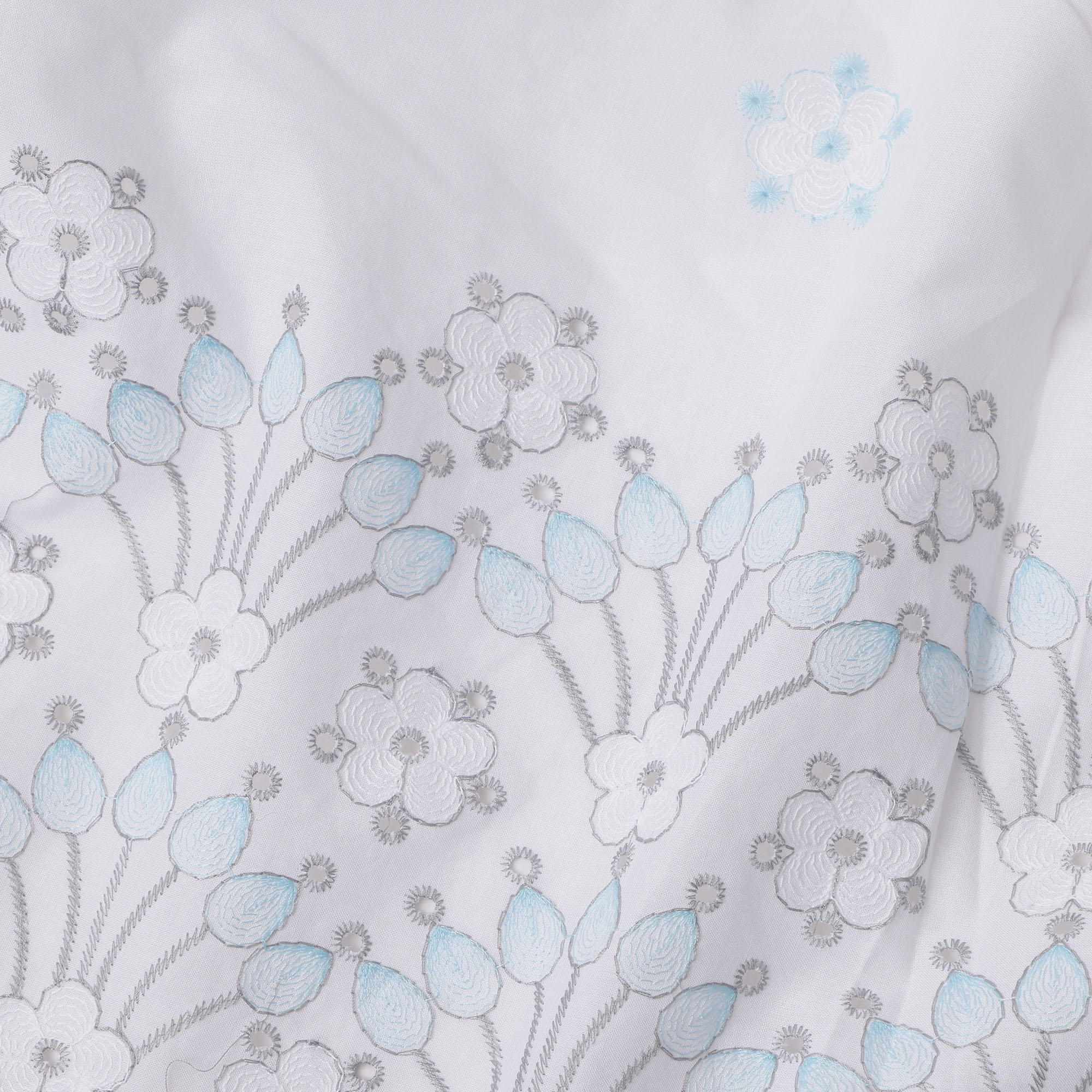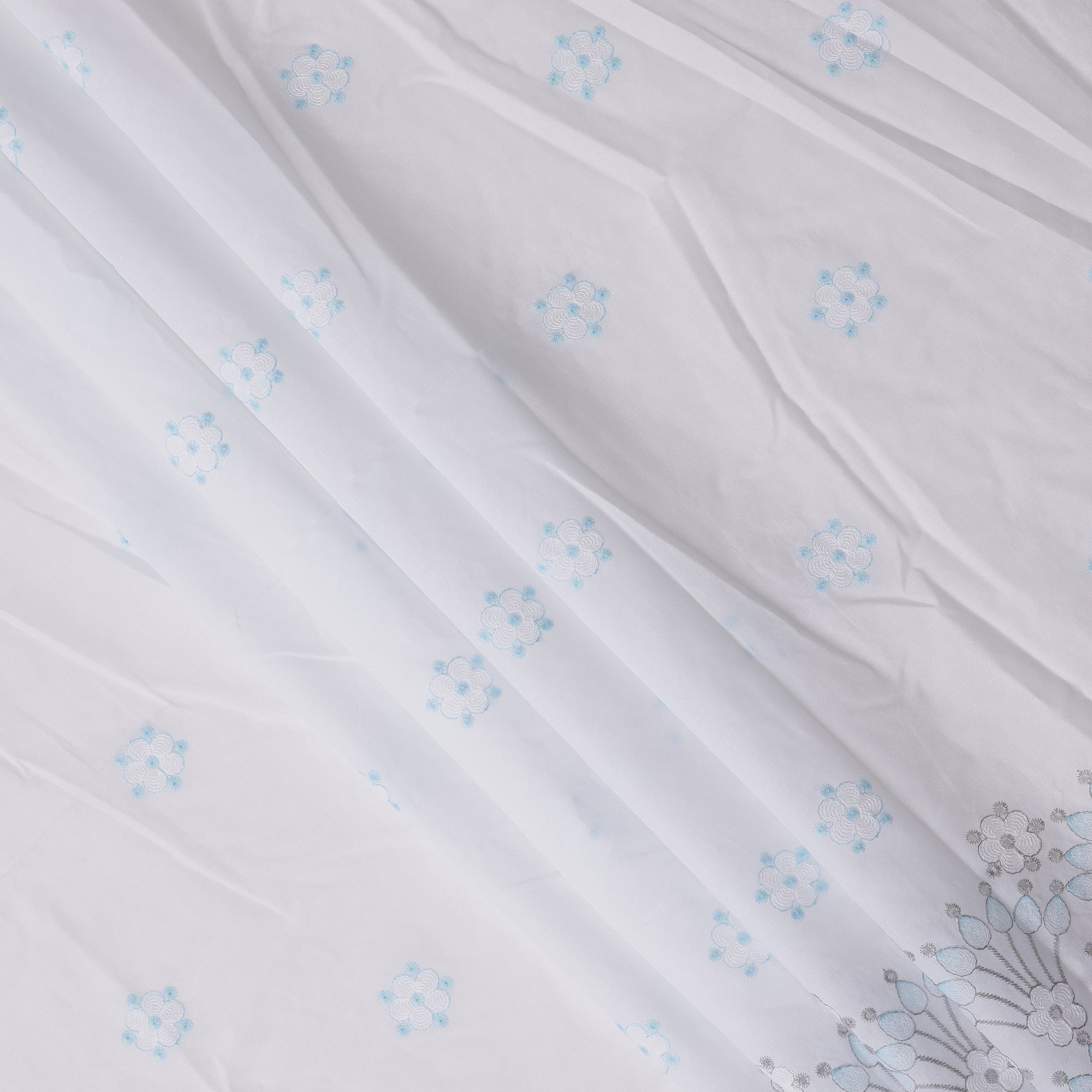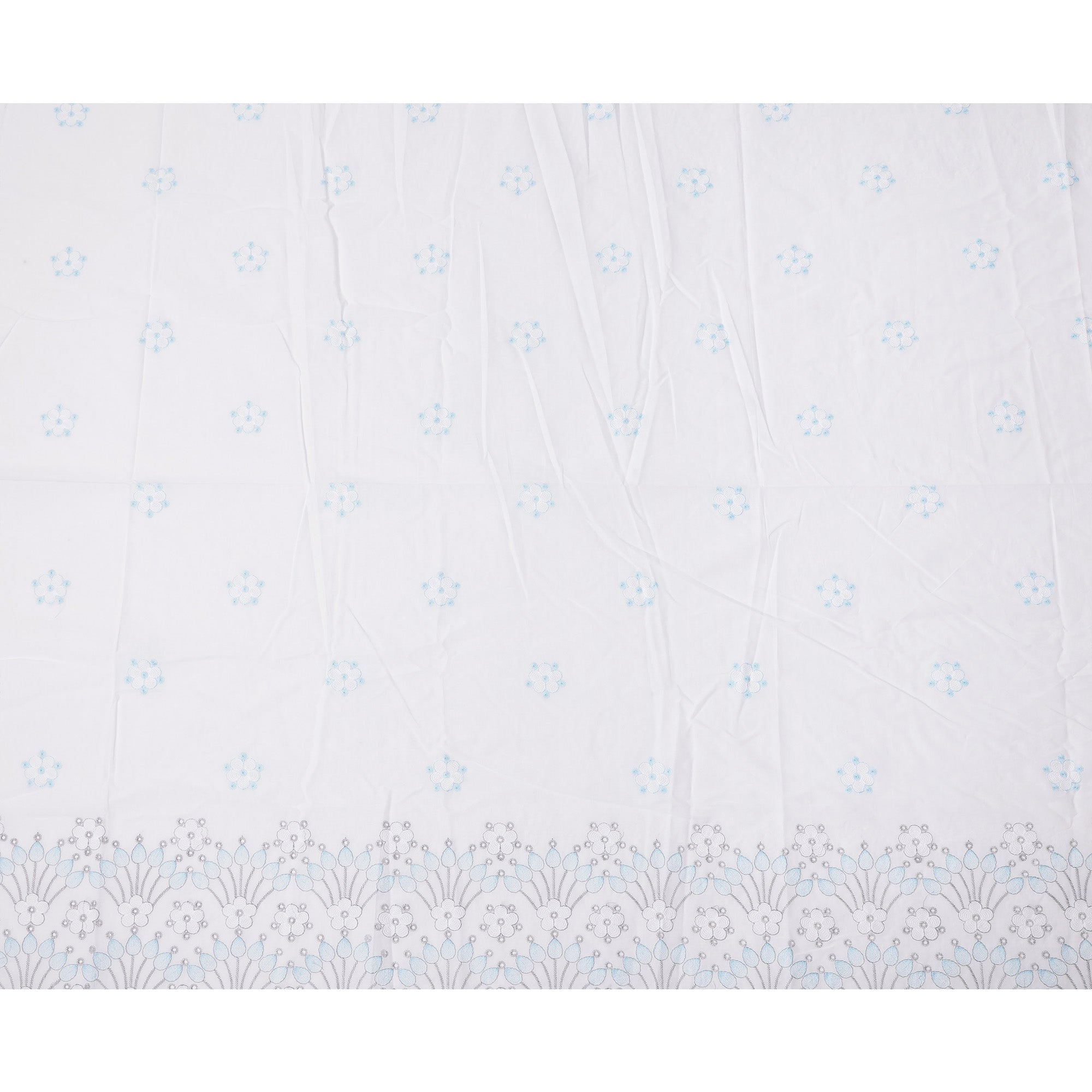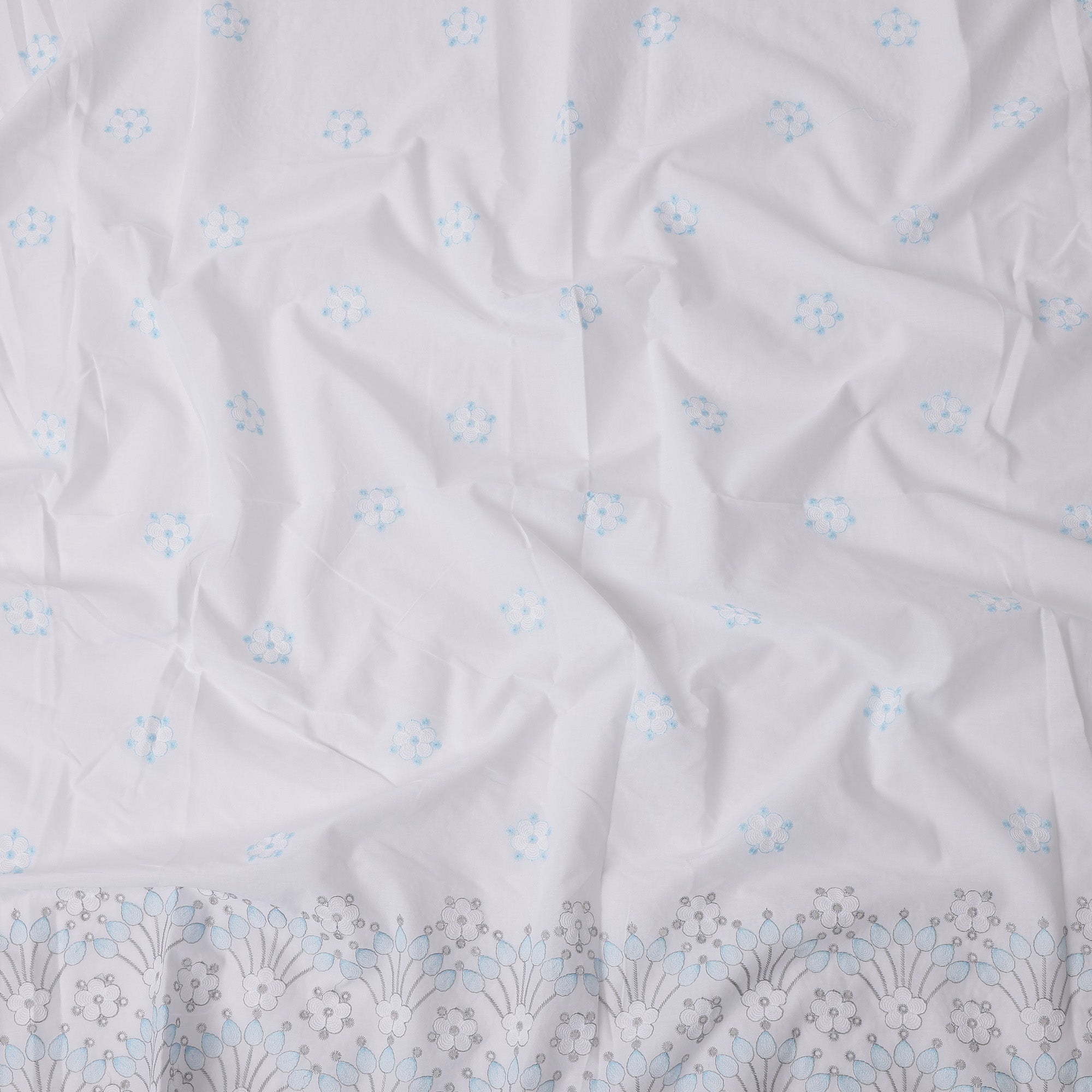 White Floral Embroidered Cotton Voile Fabric with Border Design, 110 Cms Width, India-D25199