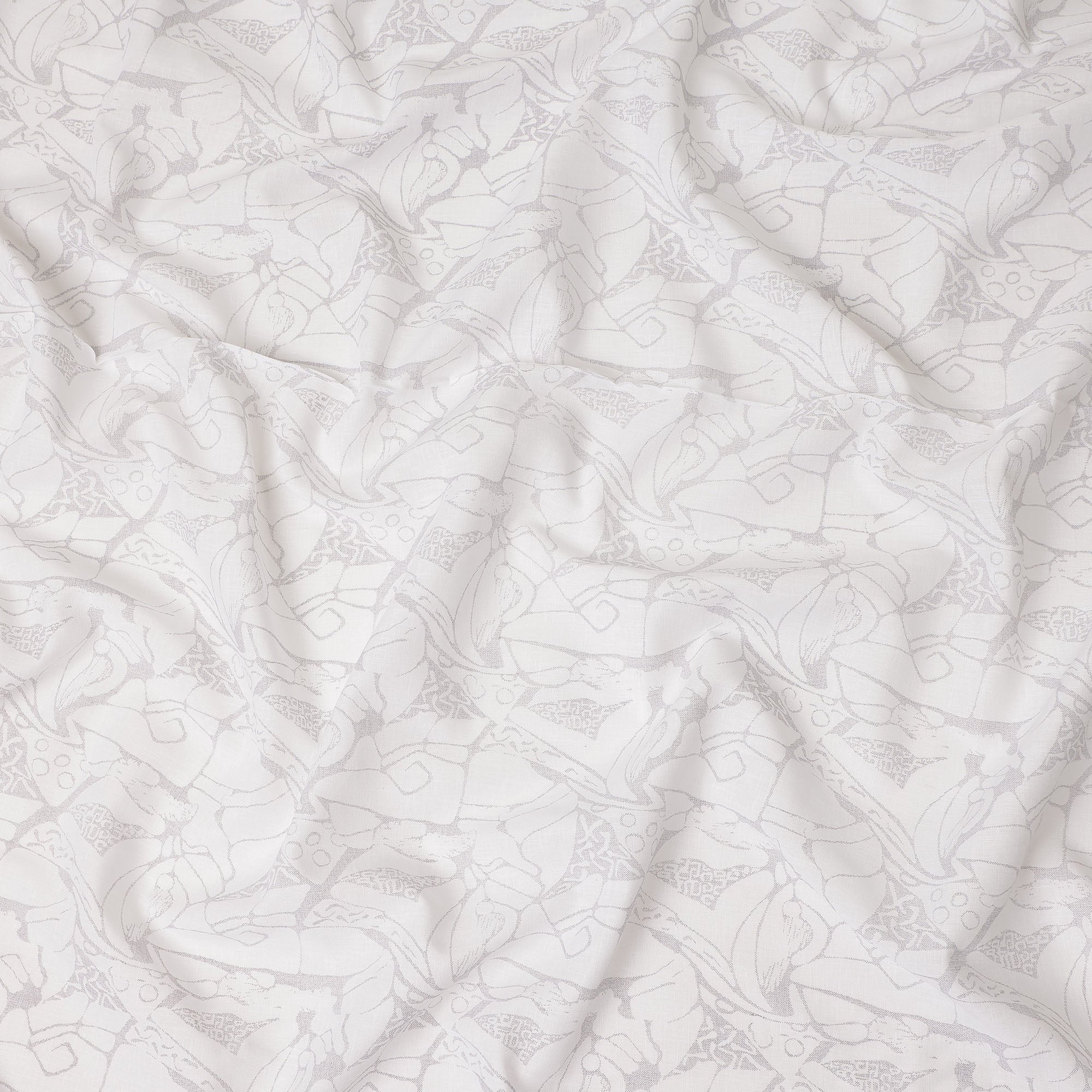 White base with grey abstract artistic sketch print creates a modern minimalist textile design.