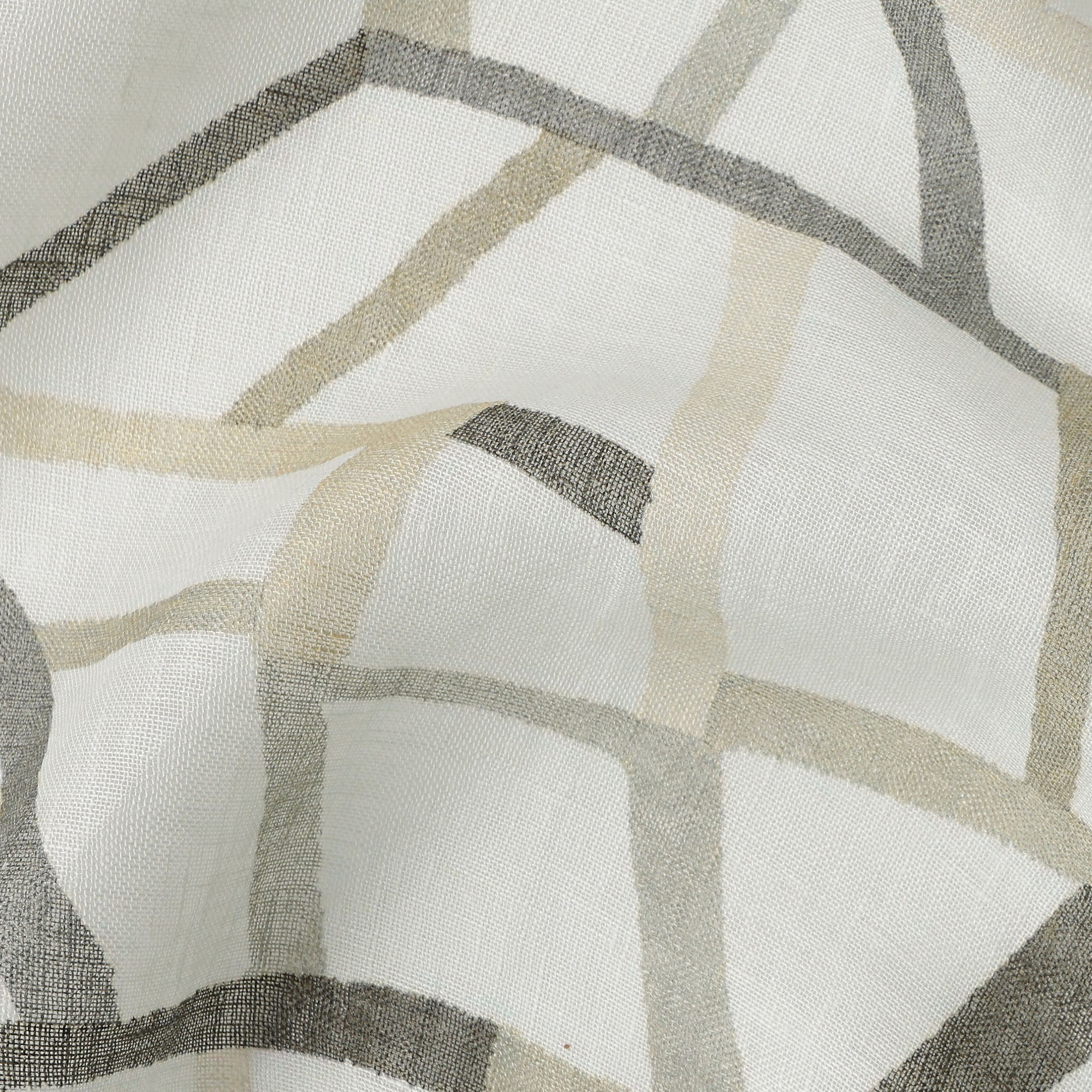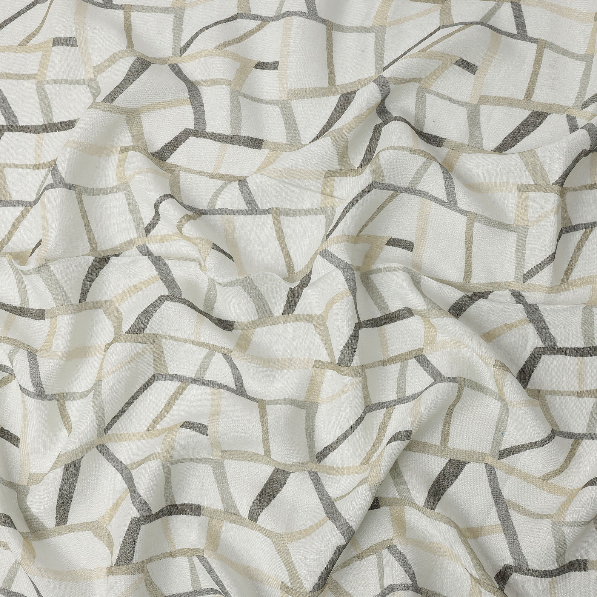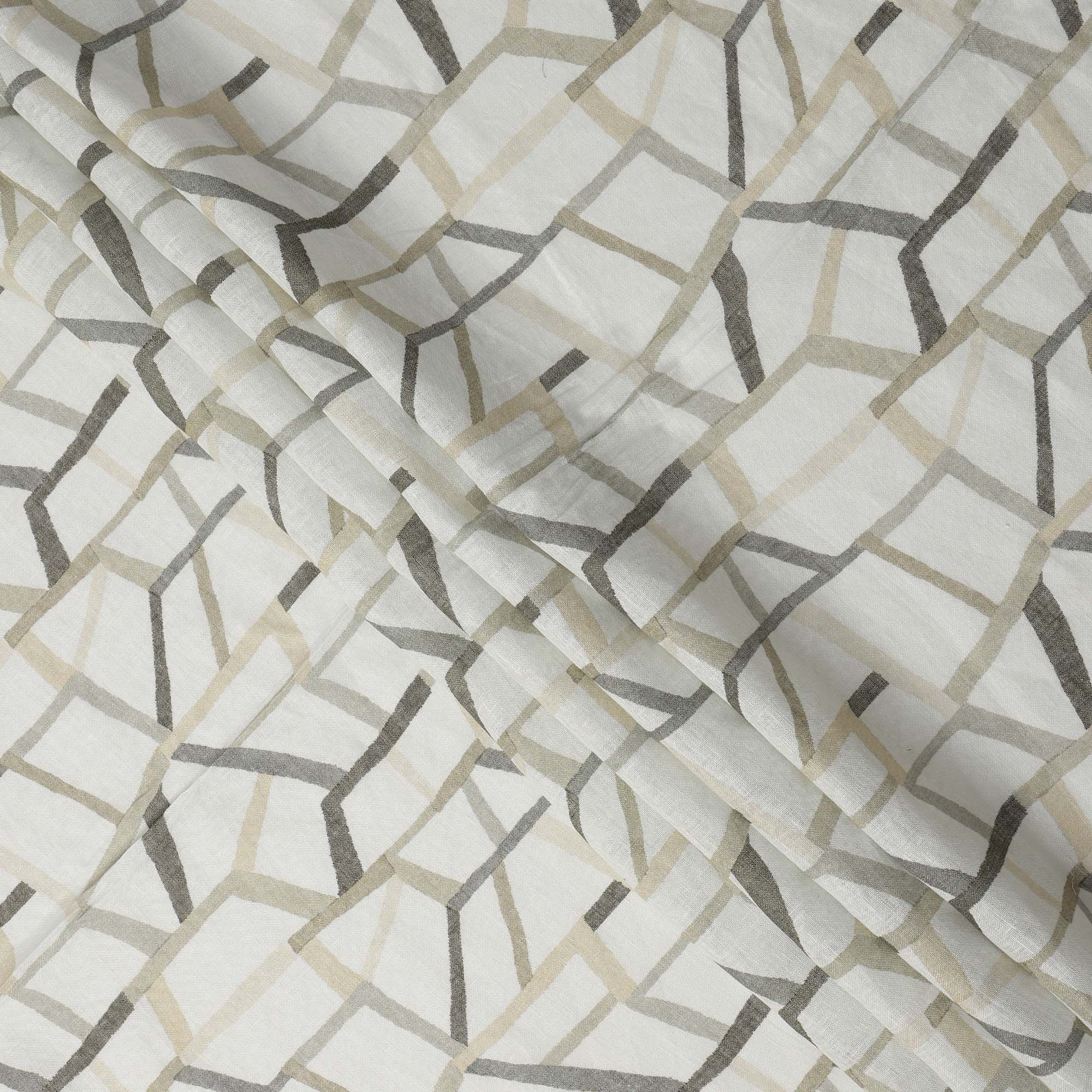 White Grey Beige Abstract Geometric Print Blended Linen Fabric, 110 Cms Width, Made in India-D26183