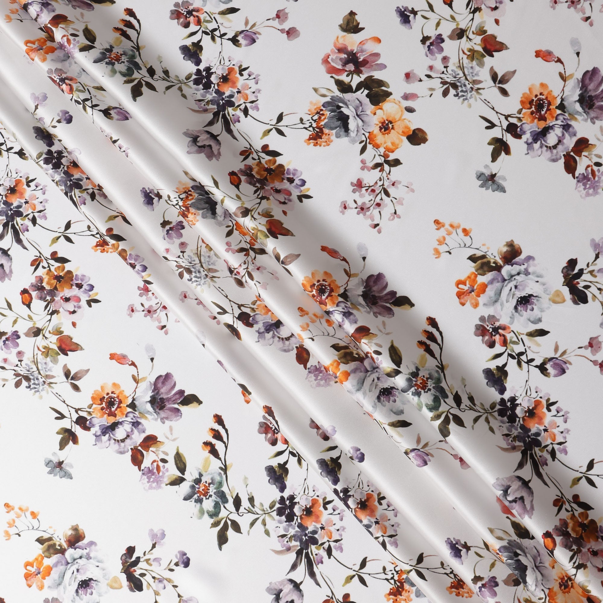 White Multicolor Floral Print Premium Pure Silk Satin Fabric, 110 Cms Width, Made in South Korea-D25940