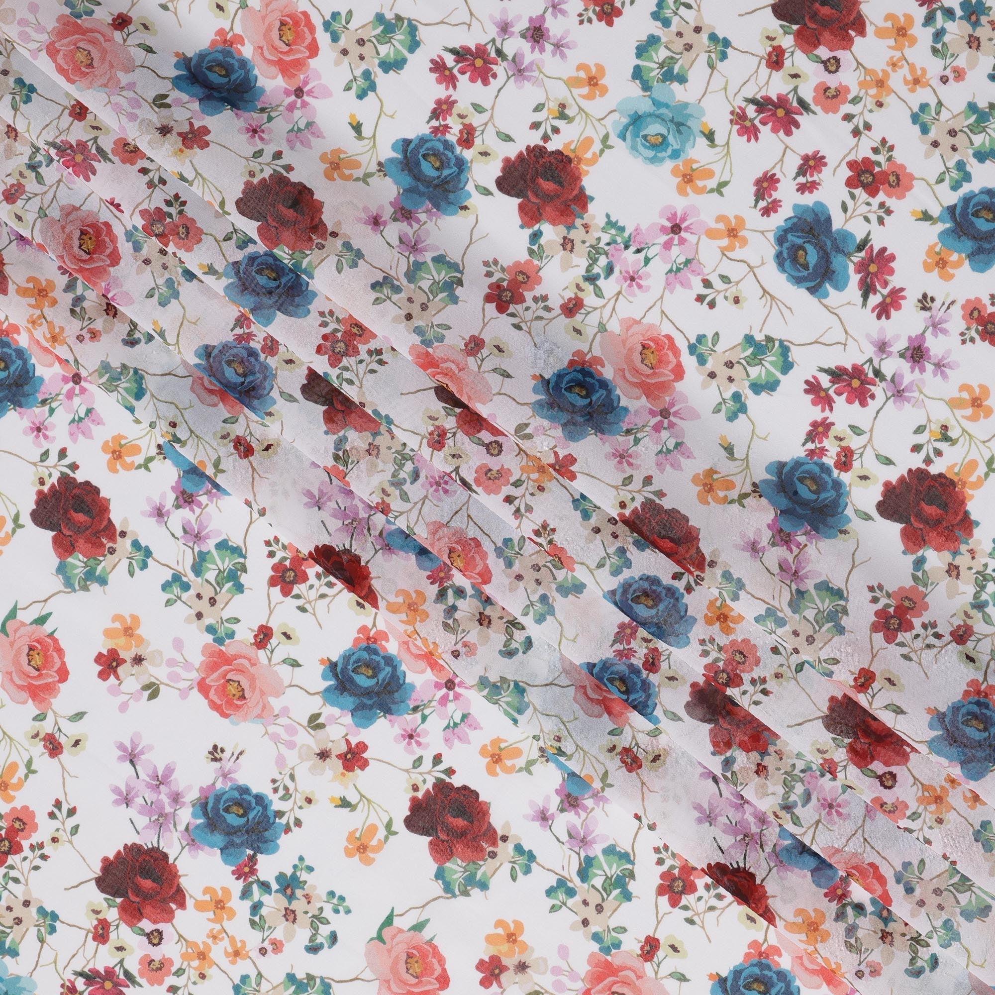 Bright, fresh, and full of charm, this white traditional Sudanese thobe in pure cotton voile fabric is a celebration of elegance and comfort. Measuring 4.5 meters in length and 140 cm in width, this fabric features a delightful array of floral prints in vibrant shades of blue, red, peach, lavender, maroon, and teal, intricately arranged over a clean white base to evoke a garden in full bloom. The fabric is crafted in India using high-quality cotton voile known for its lightness, breathability, and soft drape, making it perfect for both warm climates and graceful ethnic styling. The semi-sheer nature adds fluidity to the fabric, offering ease of movement and a breezy silhouette for festive and everyday wear. It’s easy to maintain and retains its vivid colors and texture with gentle cold hand washing. Shop online now to add this bright, floral beauty to your ethnic collection and express your unique style with tradition and flair.