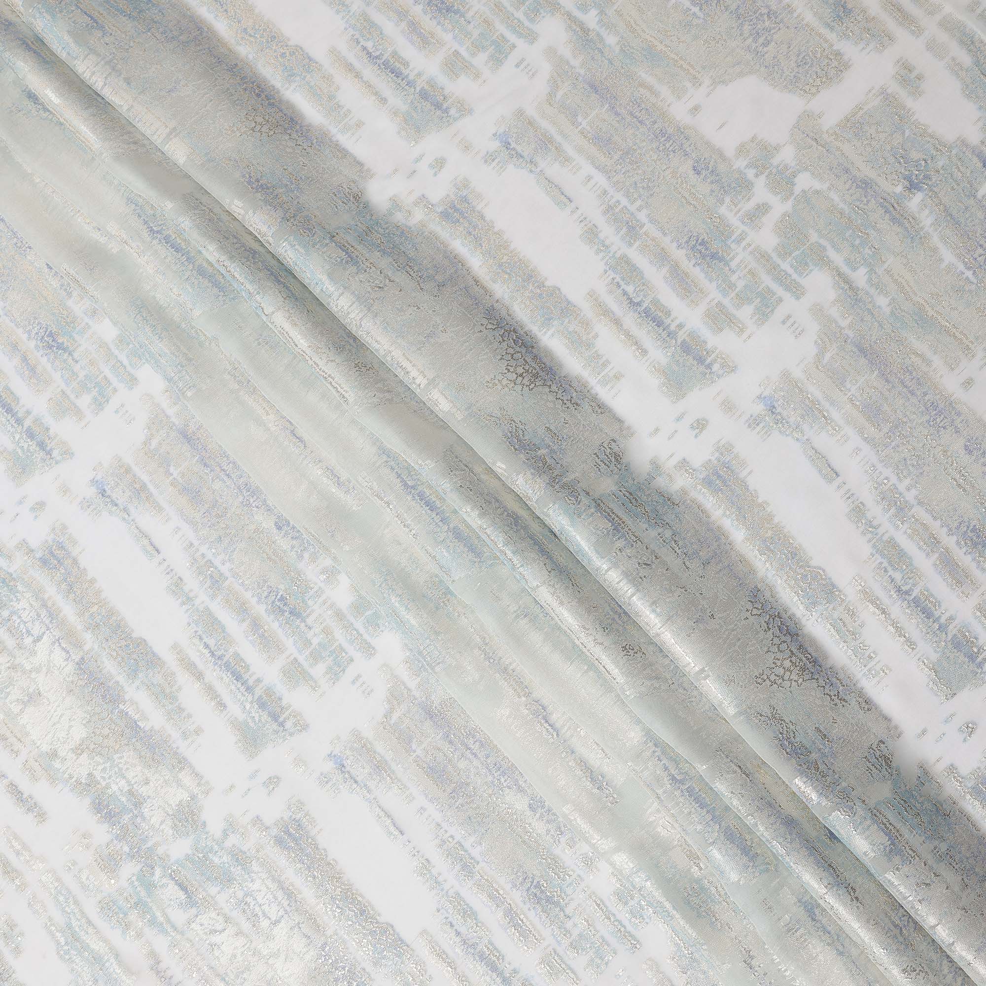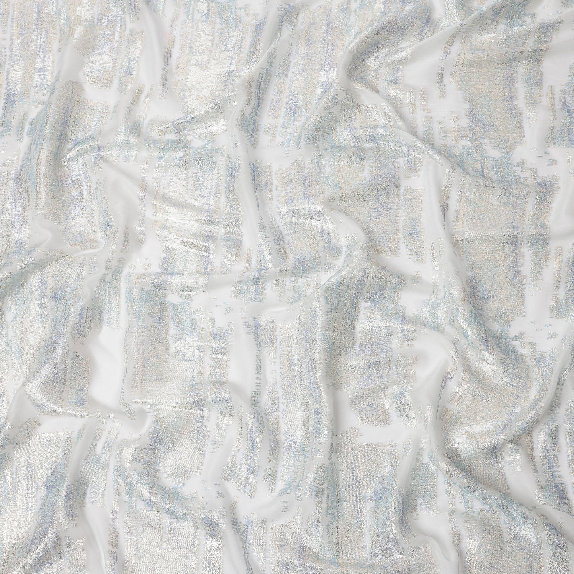 White Silver Abstract Metallic Lurex Pure Silk Chiffon Fabric, 110 Cms Width, South Korea-D25237
