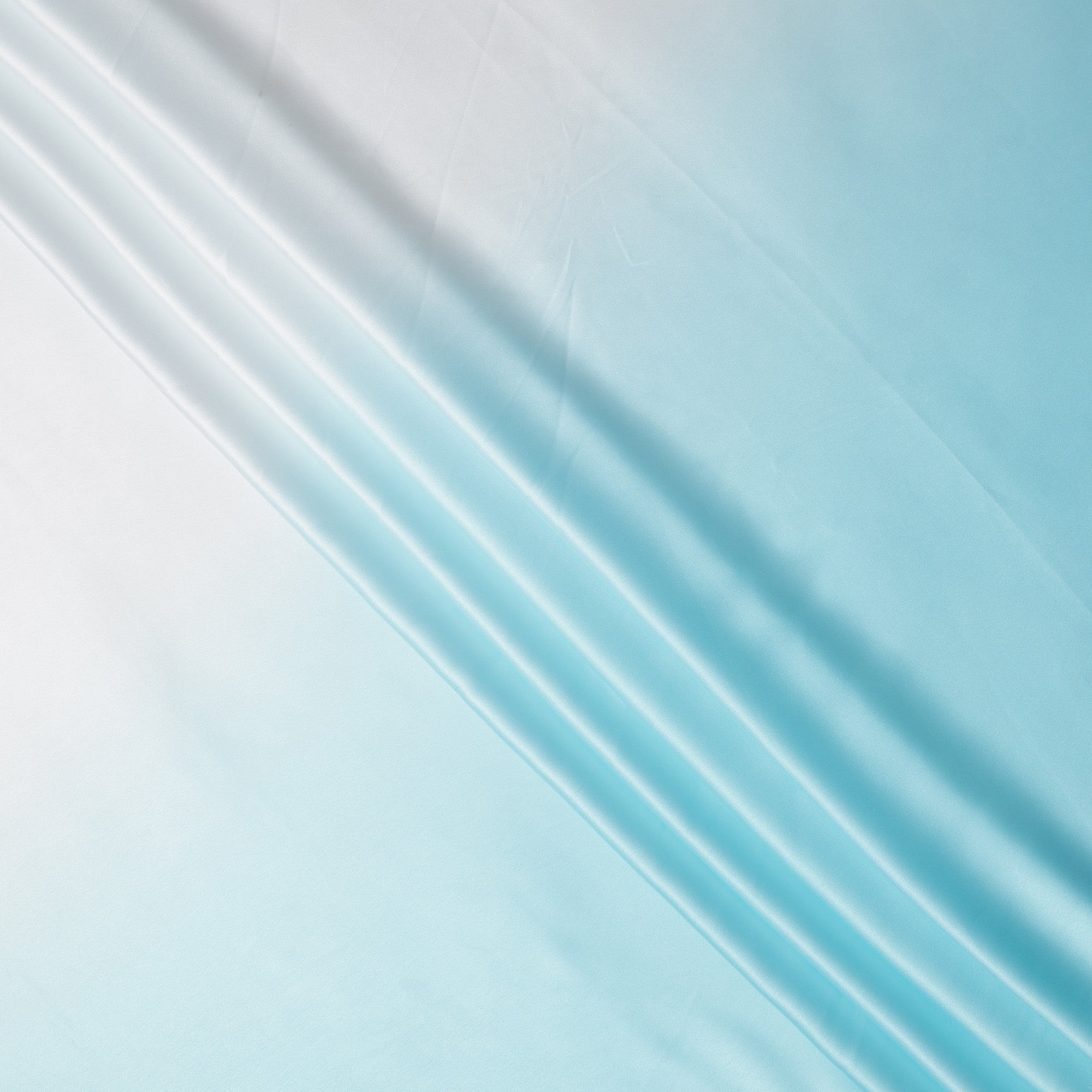 White to Aqua Blue Ombre Synthetic Satin Fabric, 110 Cms Width, India-D24665