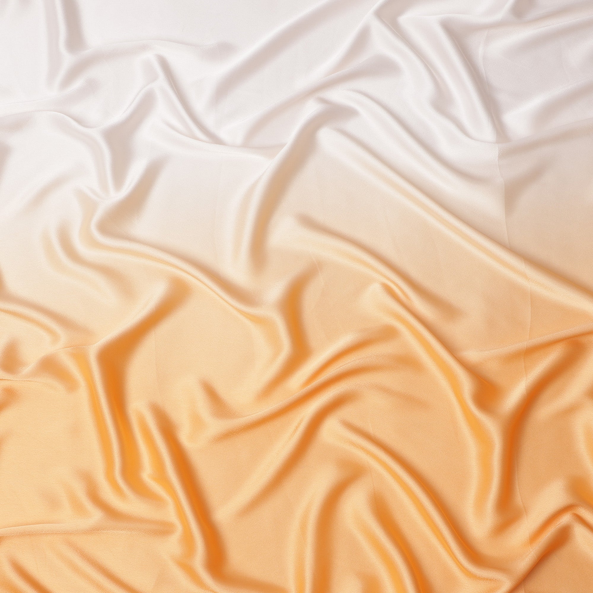 White to Peach Ombre Synthetic Satin Fabric, 110 Cms Width, India-D24658