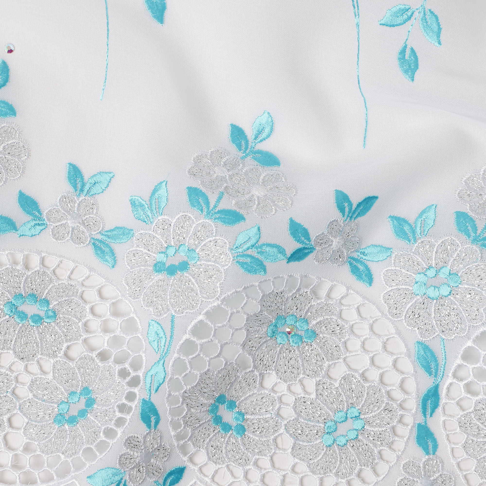 This elegant White Traditional Sudanese Premium Thobe fabric is crafted from high quality pure cotton voile, offering a soft, lightweight, and breathable texture that drapes beautifully for traditional attire. The fabric features delicate floral vine embroidery highlighted with subtle stone work that adds a refined decorative sparkle while maintaining a graceful and sophisticated appearance. The refreshing white base combined with light blue and silver floral embroidery creates a beautifully balanced and elegant design. With a generous length of 4.5 meters and a width of 140 cm, this fabric provides ample material to create a flowing Sudanese thobe that combines comfort with timeless cultural style. The airy cotton voile weave ensures excellent breathability, making it ideal for warm climates while preserving a luxurious and graceful look for special occasions and celebrations.