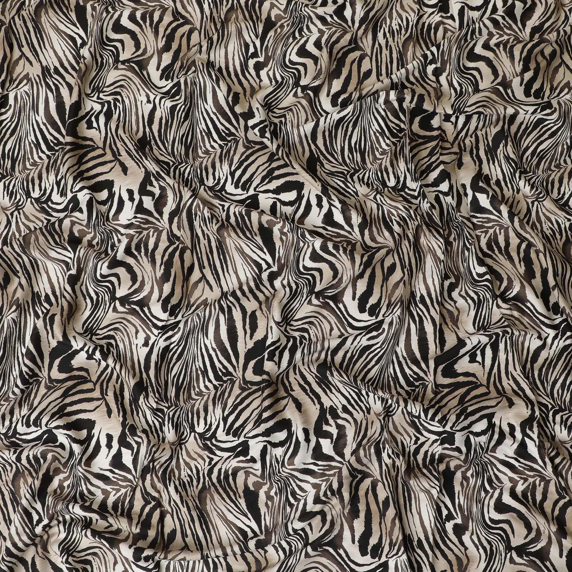 White viscose twill printed fabric with brown prints in animal skin design-D11177