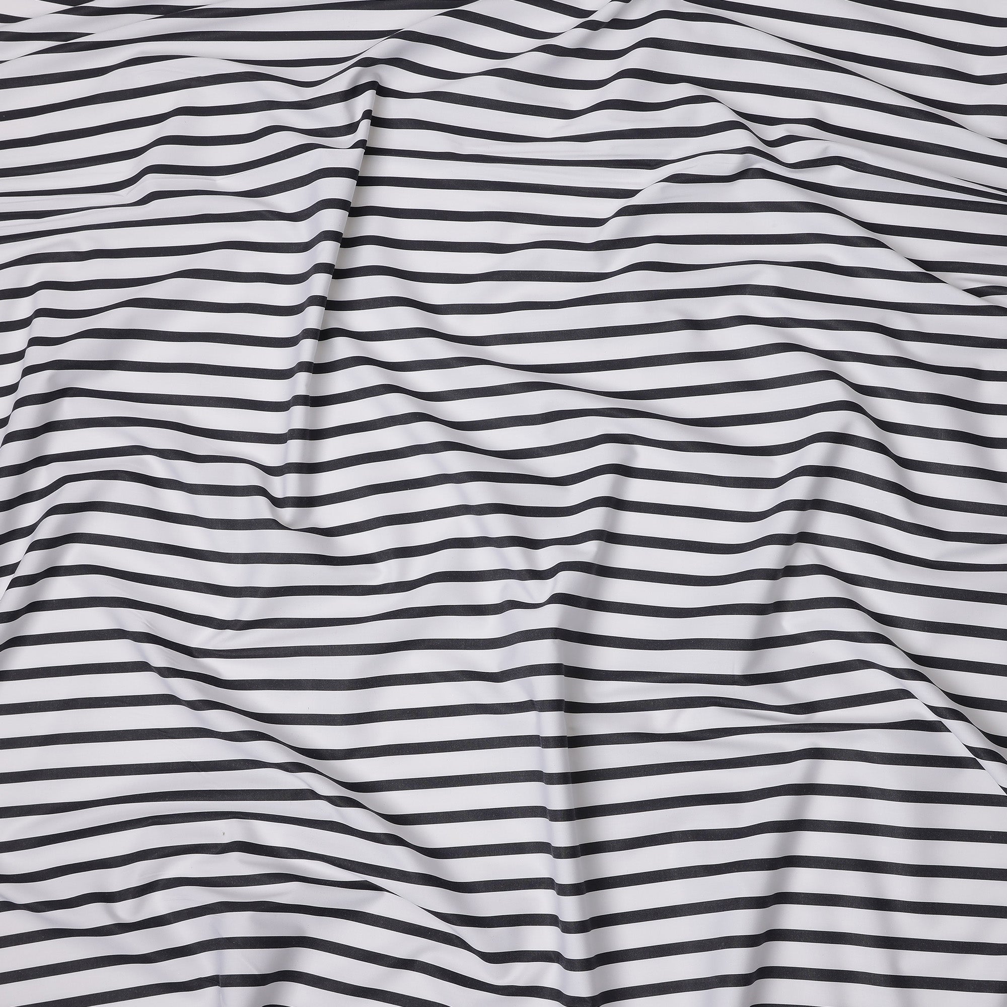 White with Black Horizontal Stripes 100% Cotton Italian Shirting Fabric, 150 Cms, Italy-D25152