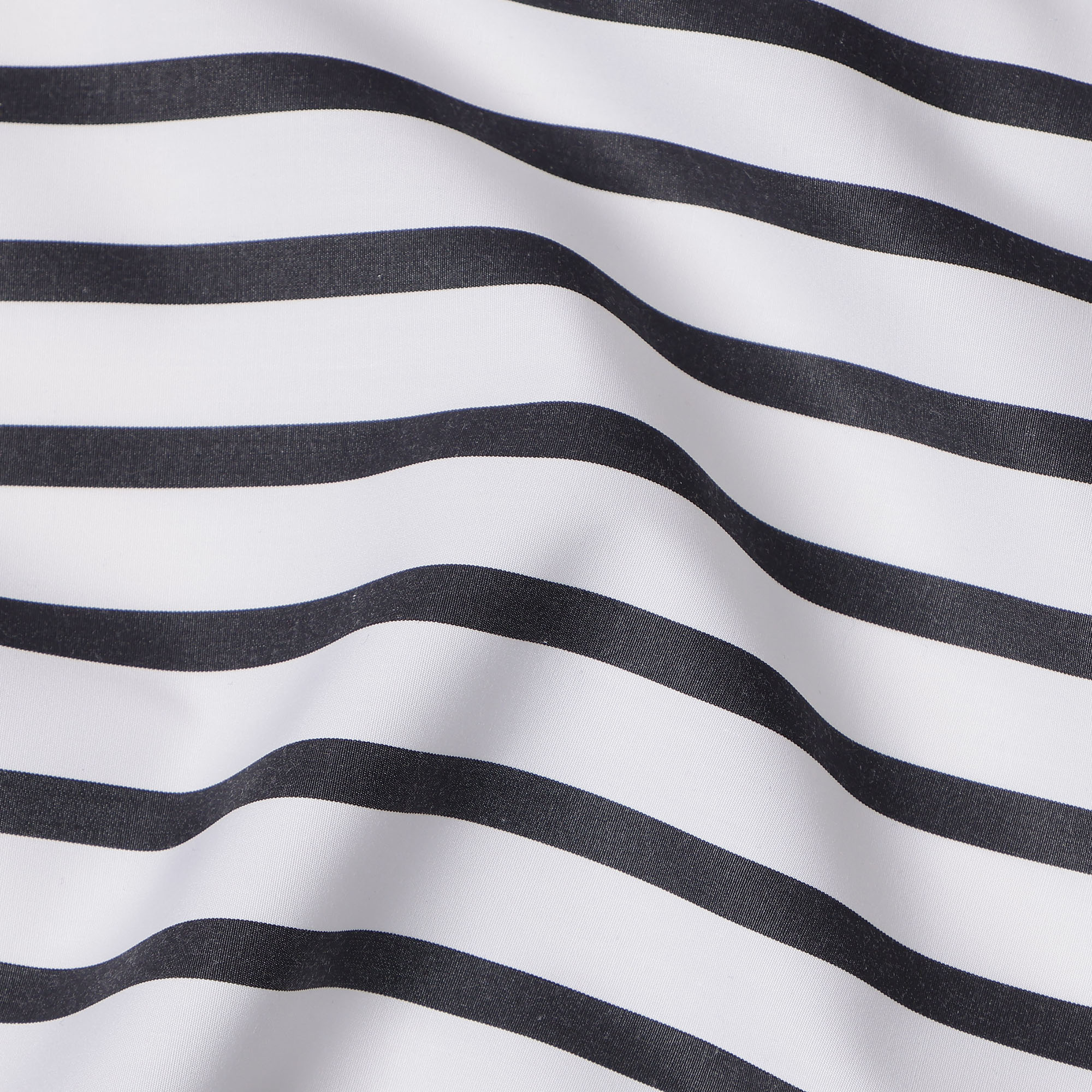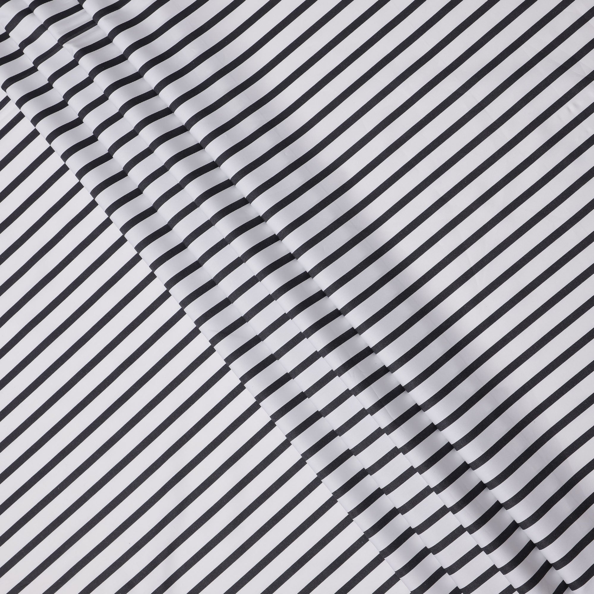 Premium white cotton shirting fabric with bold black horizontal stripes