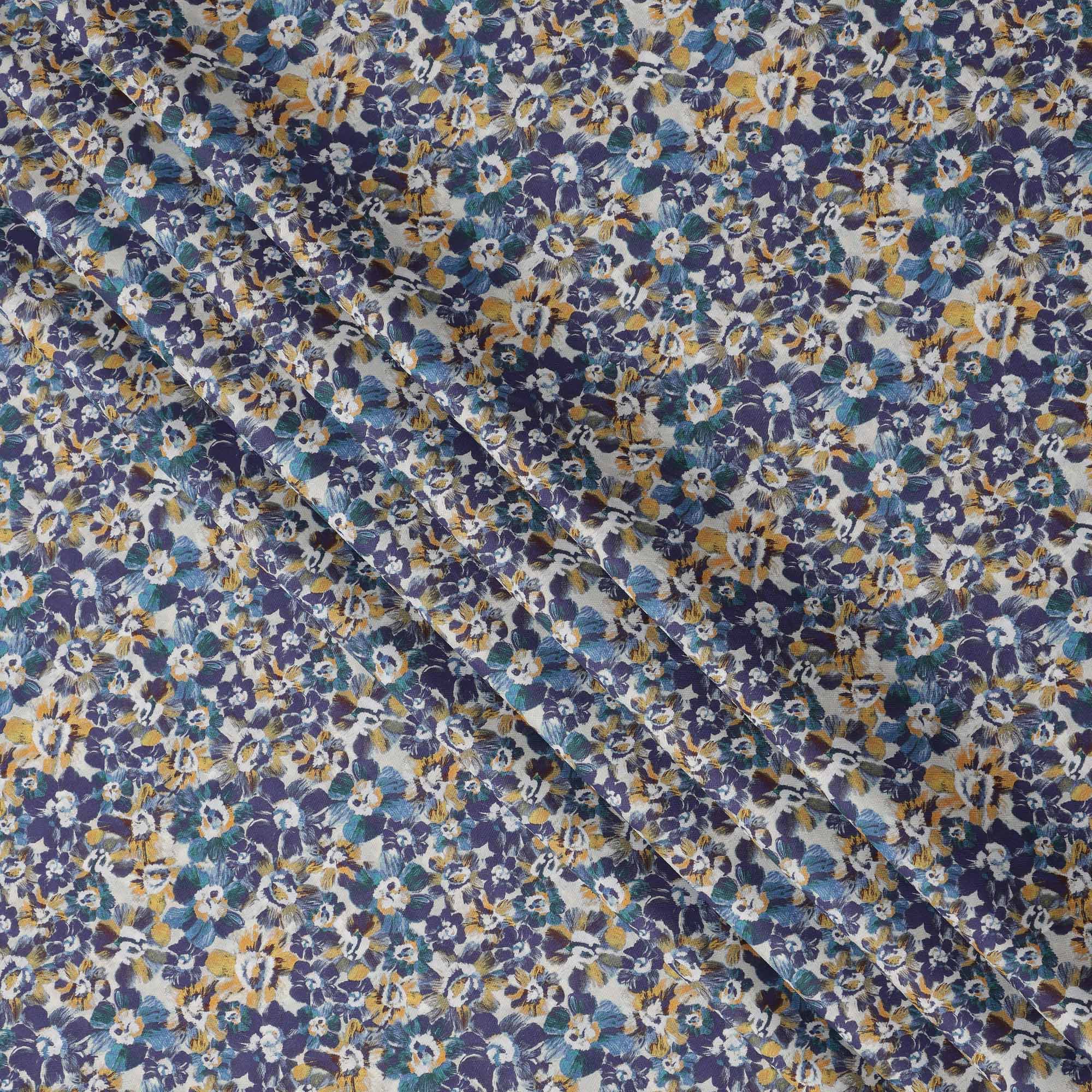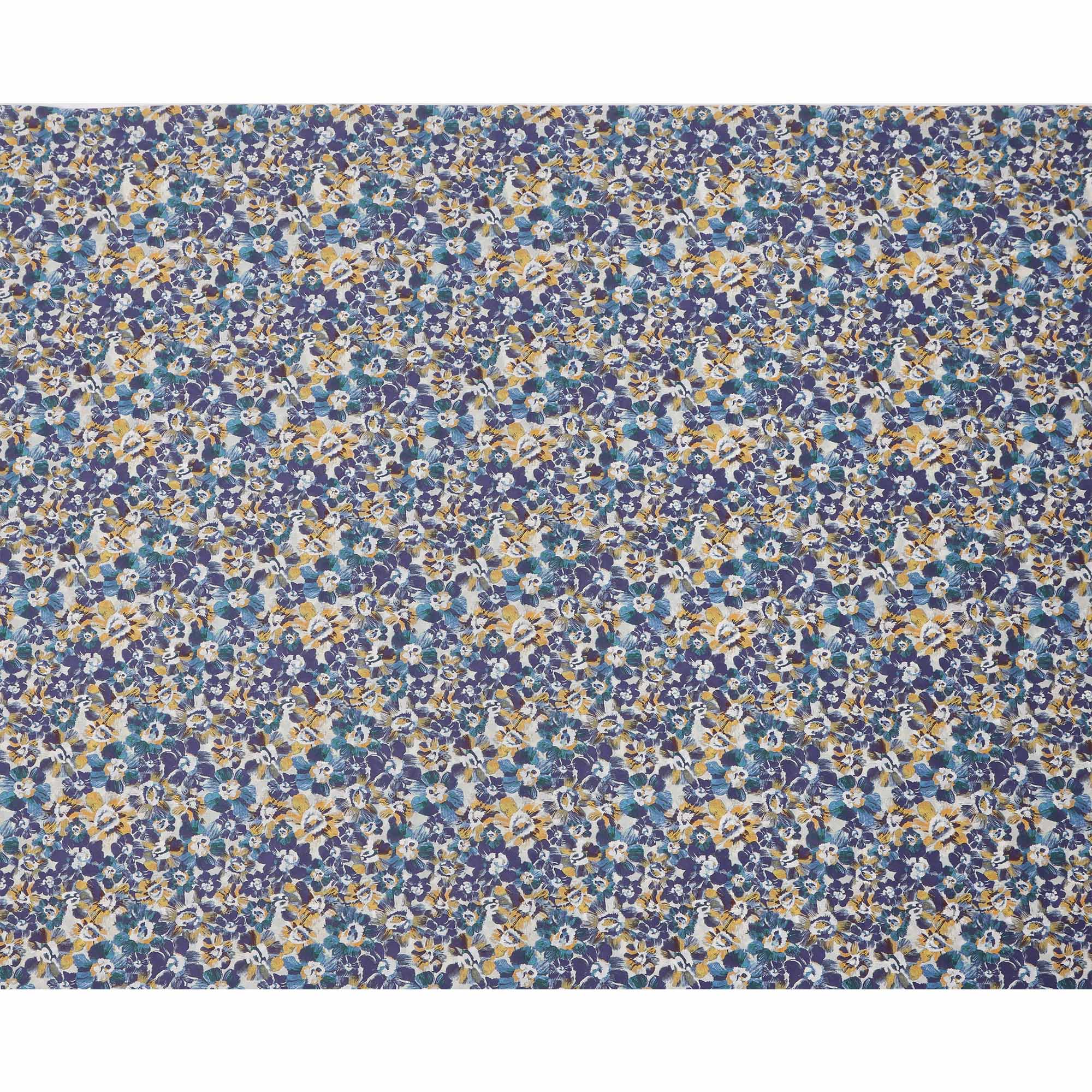 White with Blue and Yellow Floral Print Pure Italian Cotton Lawn Fabric, 140 Cms, Italy-D25396