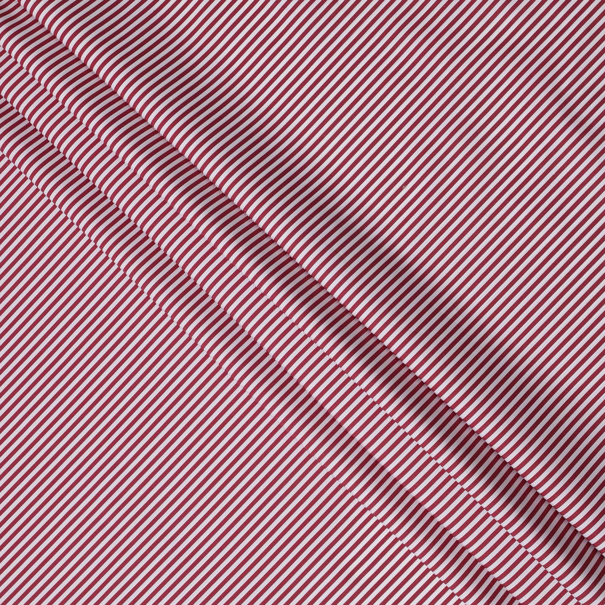 White with Red Stripes 100% Cotton Italian Shirting Fabric, 150 Cms, Italy-D25154