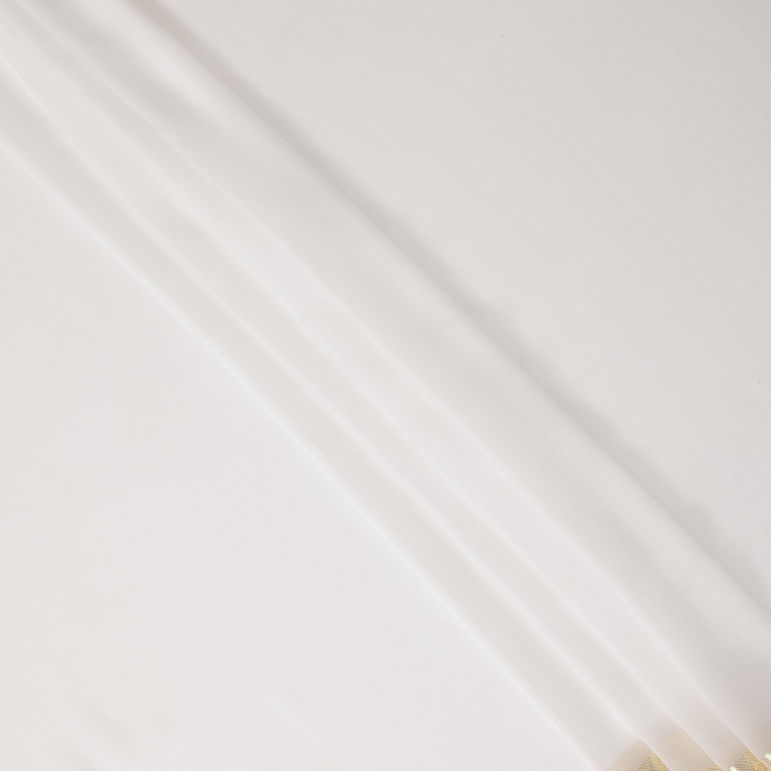 White Wrinkle Silk Chiffon Fabric with Golden Border Stripe Lightweight Sheer Textured Fabric for Sarees Dresses Dupattas and Crafts 110 Cms Wide South Korea Origin-D27660