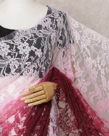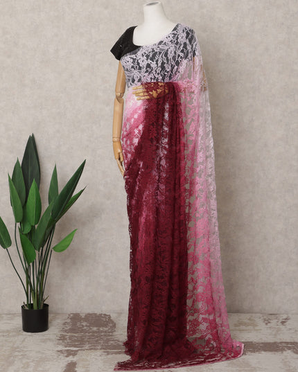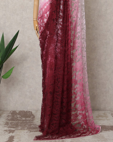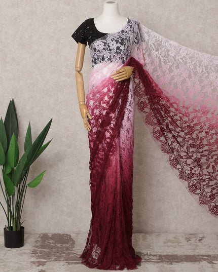 Wine Pink & Light Pink Ombre Premium French Chantilly Lace Saree – 5.5 Meters-D21882