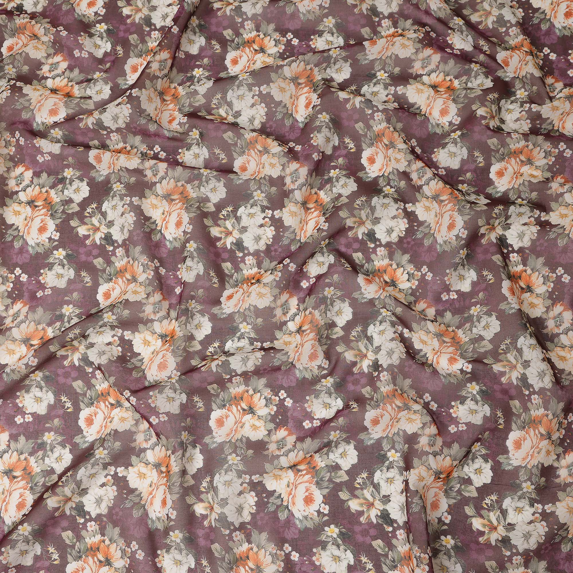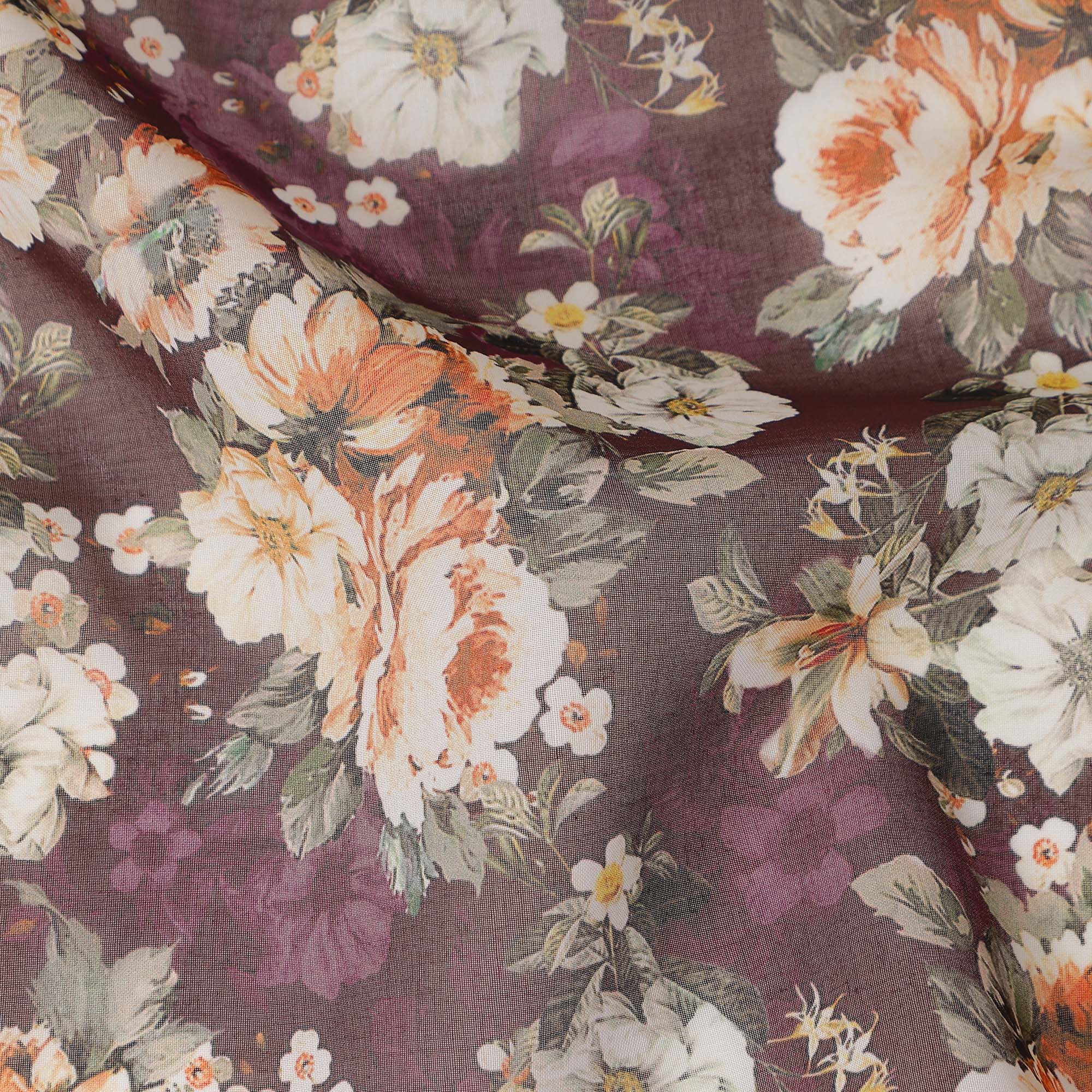 Wine Purple Vintage Floral Blossom Printed Cotton Voile Fabric 150 Cms Width Lightweight Soft Dressmaking Craft Material India-D28048