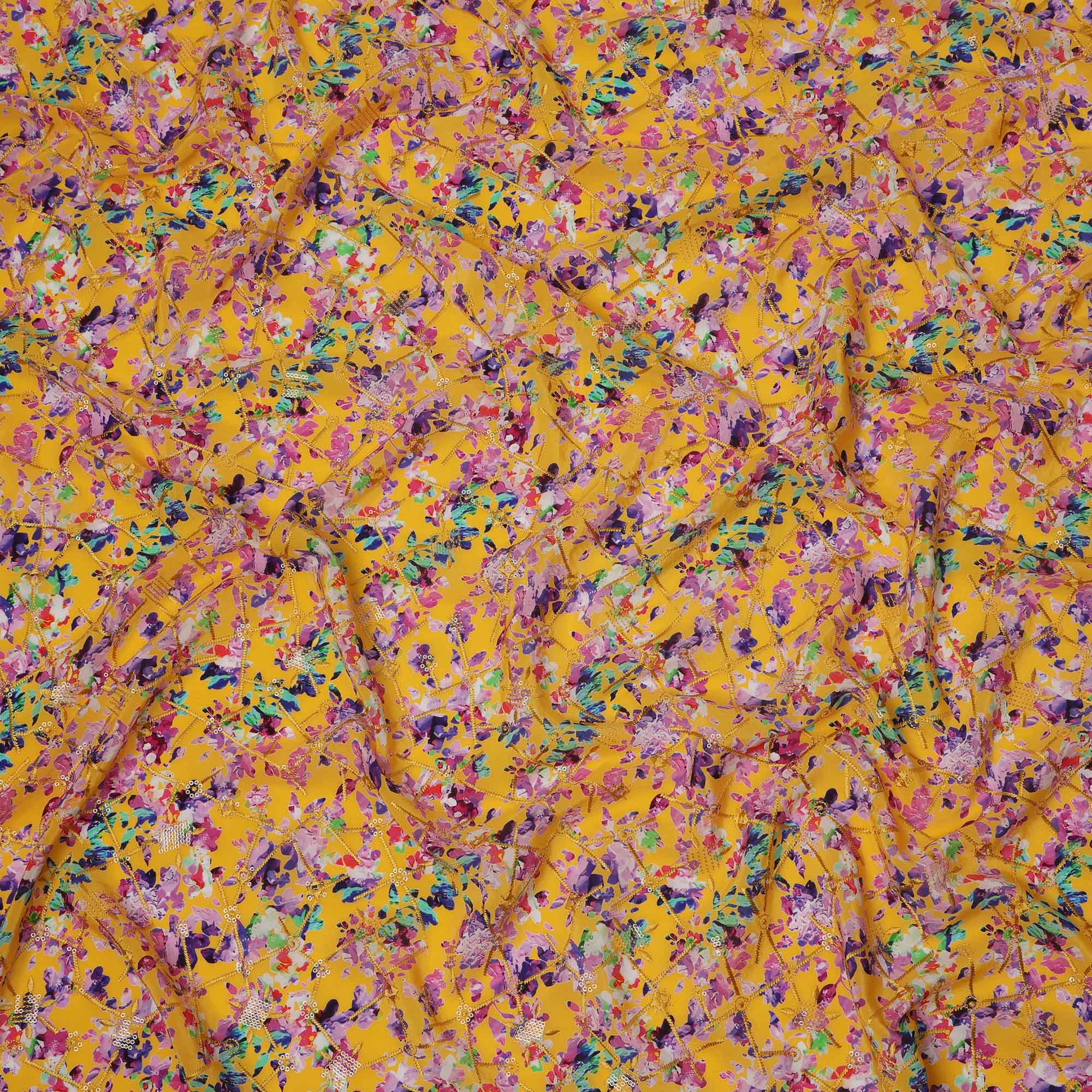 Yellow Base Multicolor Floral Abstract Digital Print Viscose Crepe Fabric, 110 Cms Width, Made in India-D23618