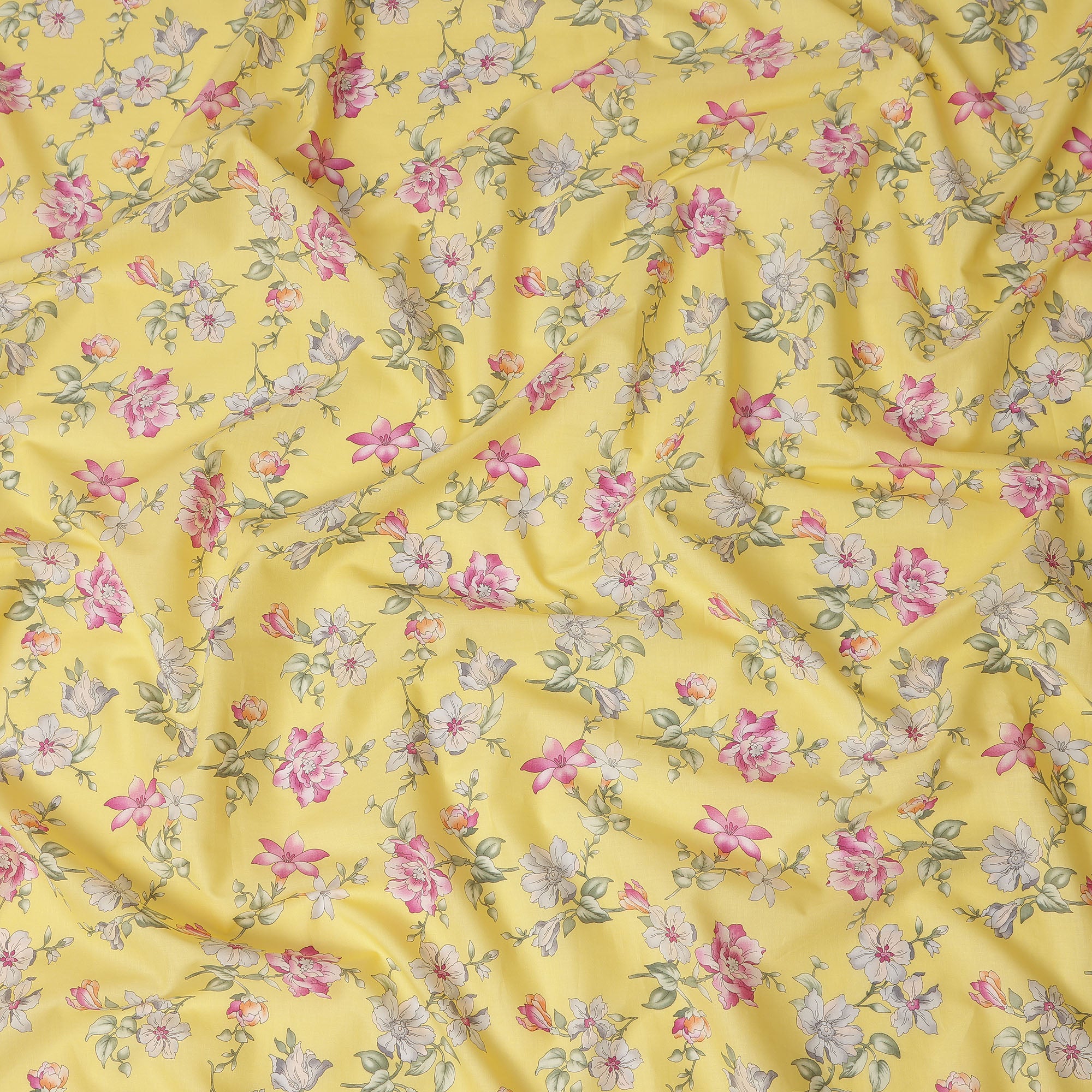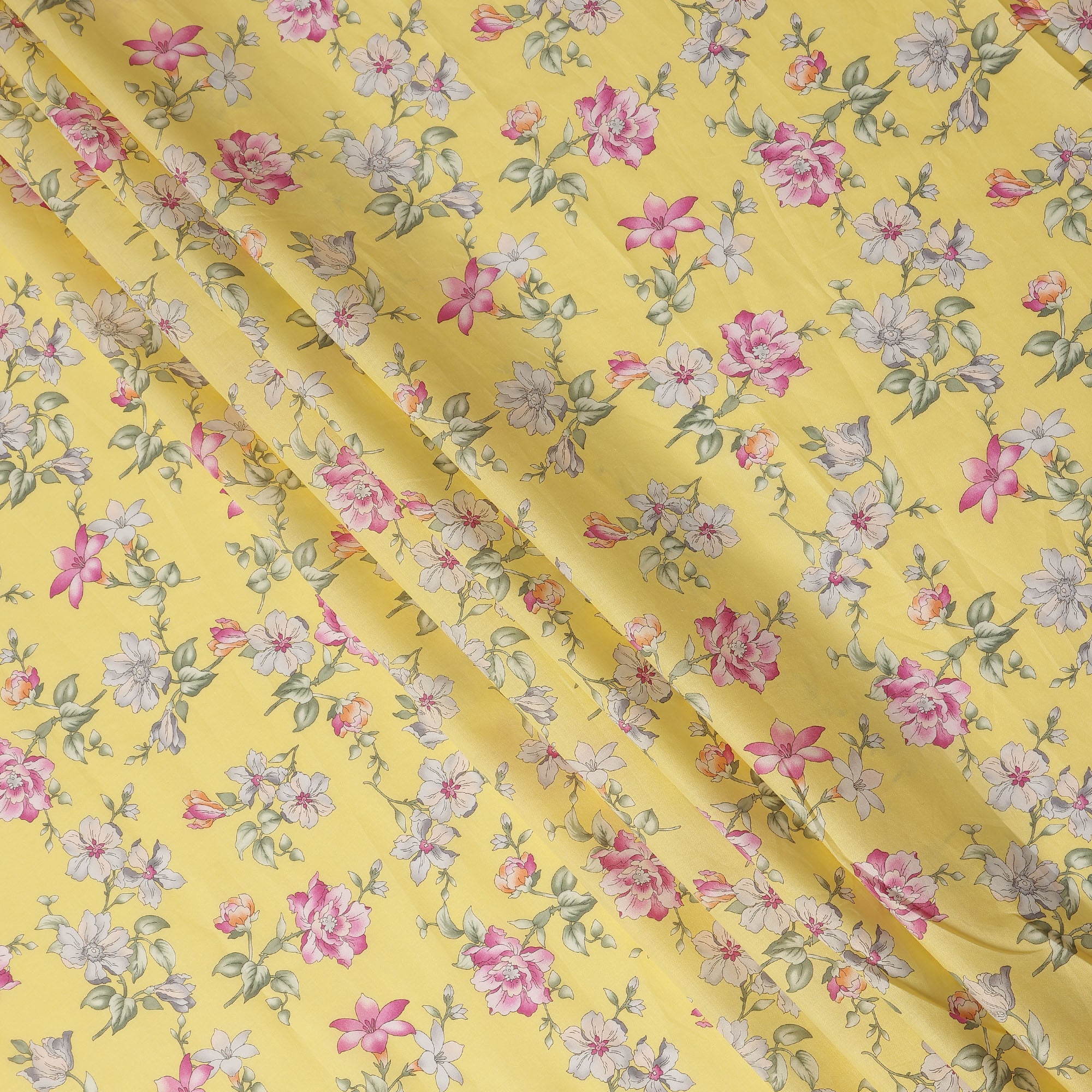 Yellow Floral Printed Cotton Lawn Fabric All Over Delicate Blooming Flower Design Soft Dressmaking Material 4.0 Meters Length 110 Cms Width India-D27652