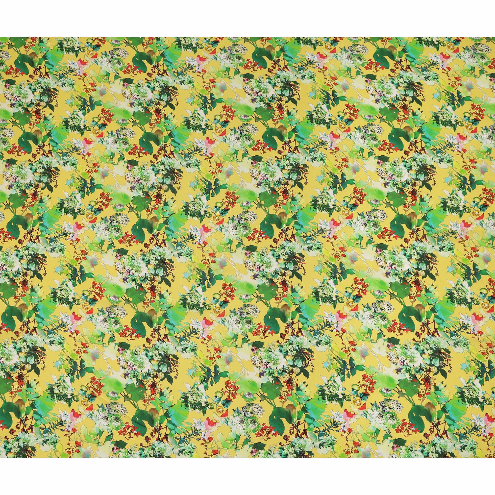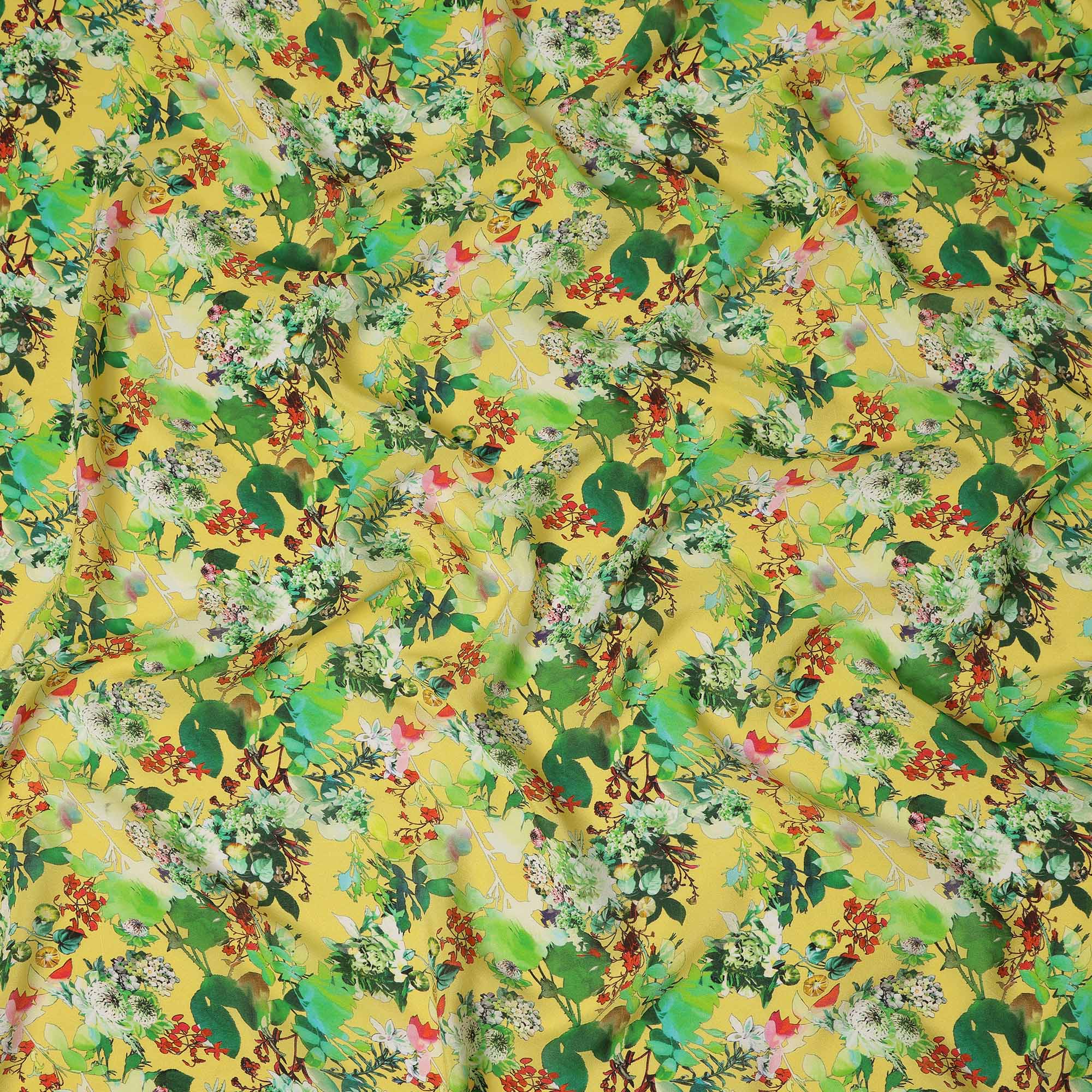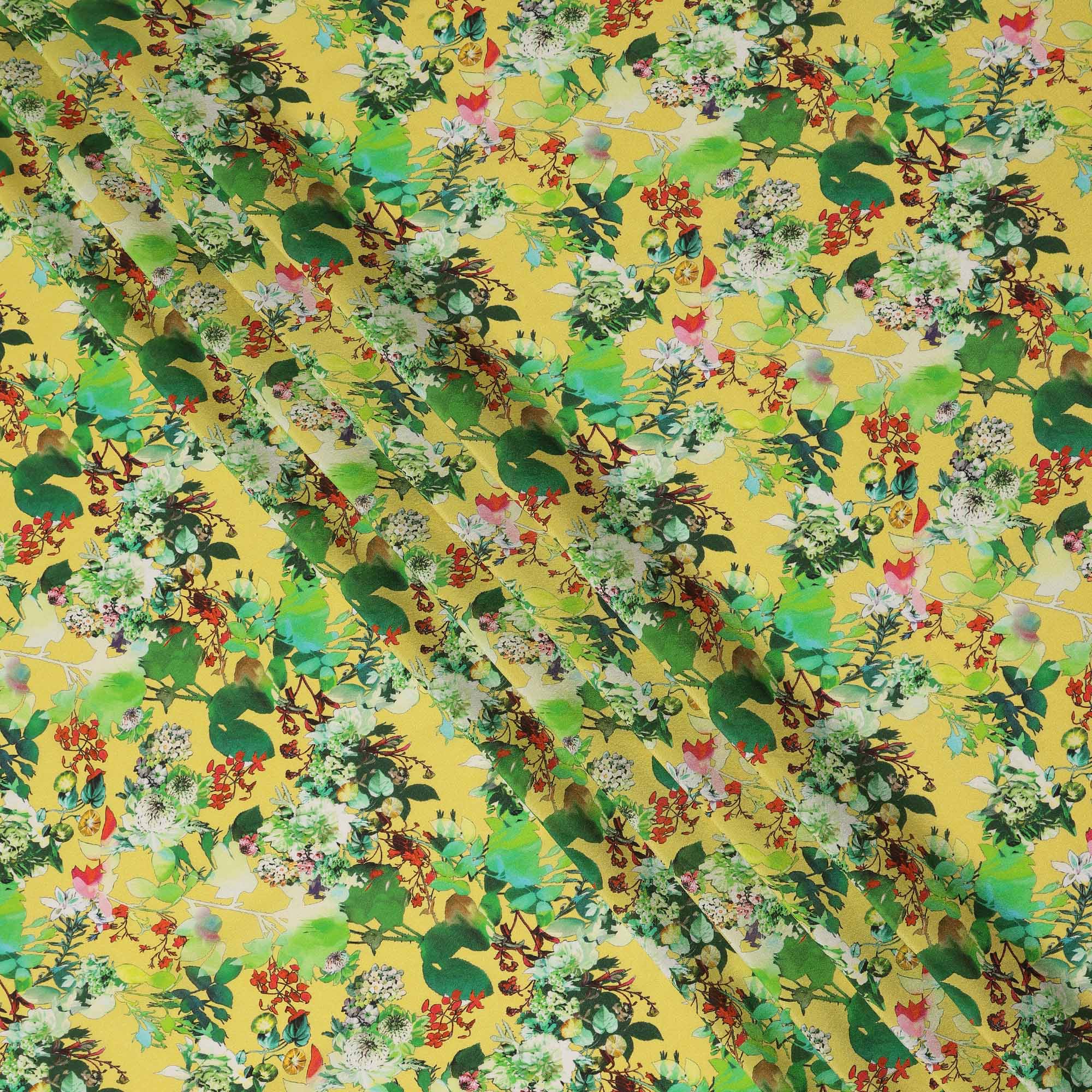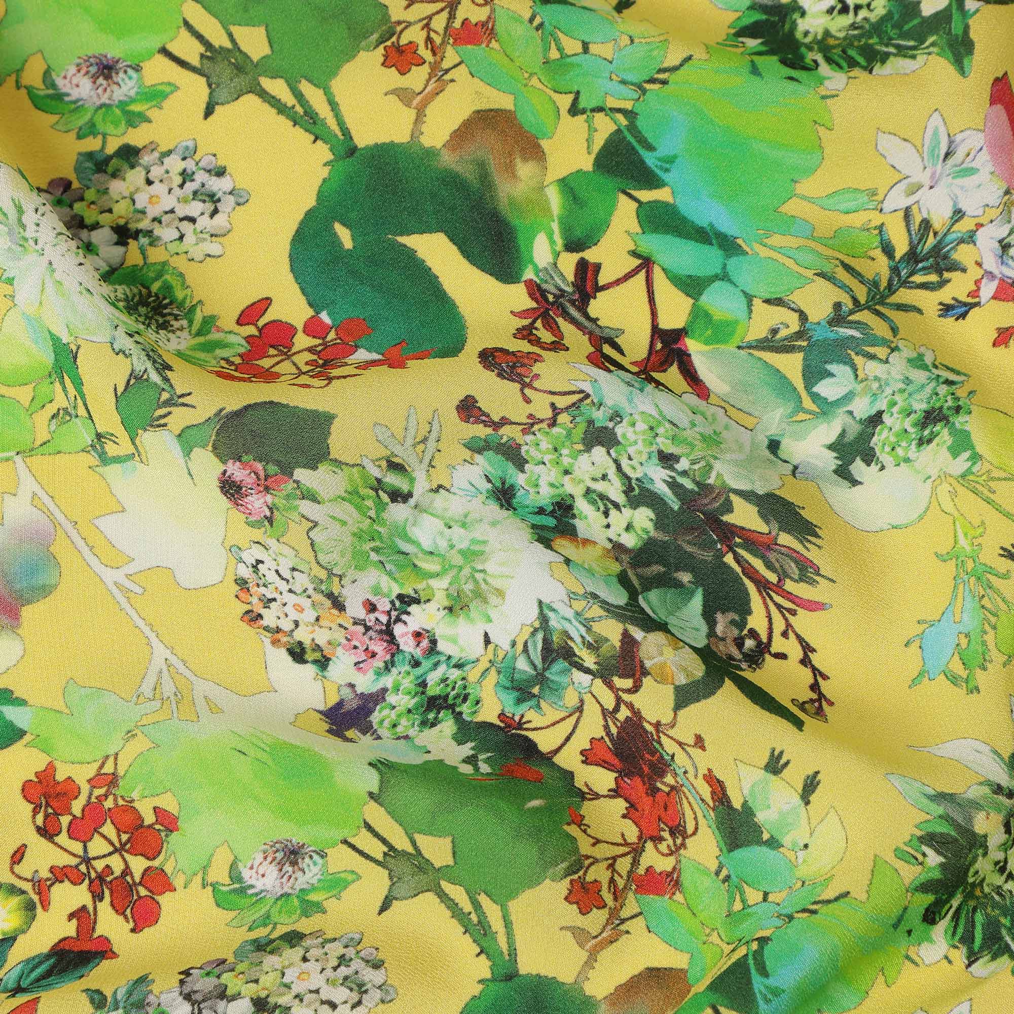 Yellow Floral Printed Premium Pure Silk Crepe Fabric Botanical Garden Design Soft Lightweight Dress Material 110 Cms Width India-D27984