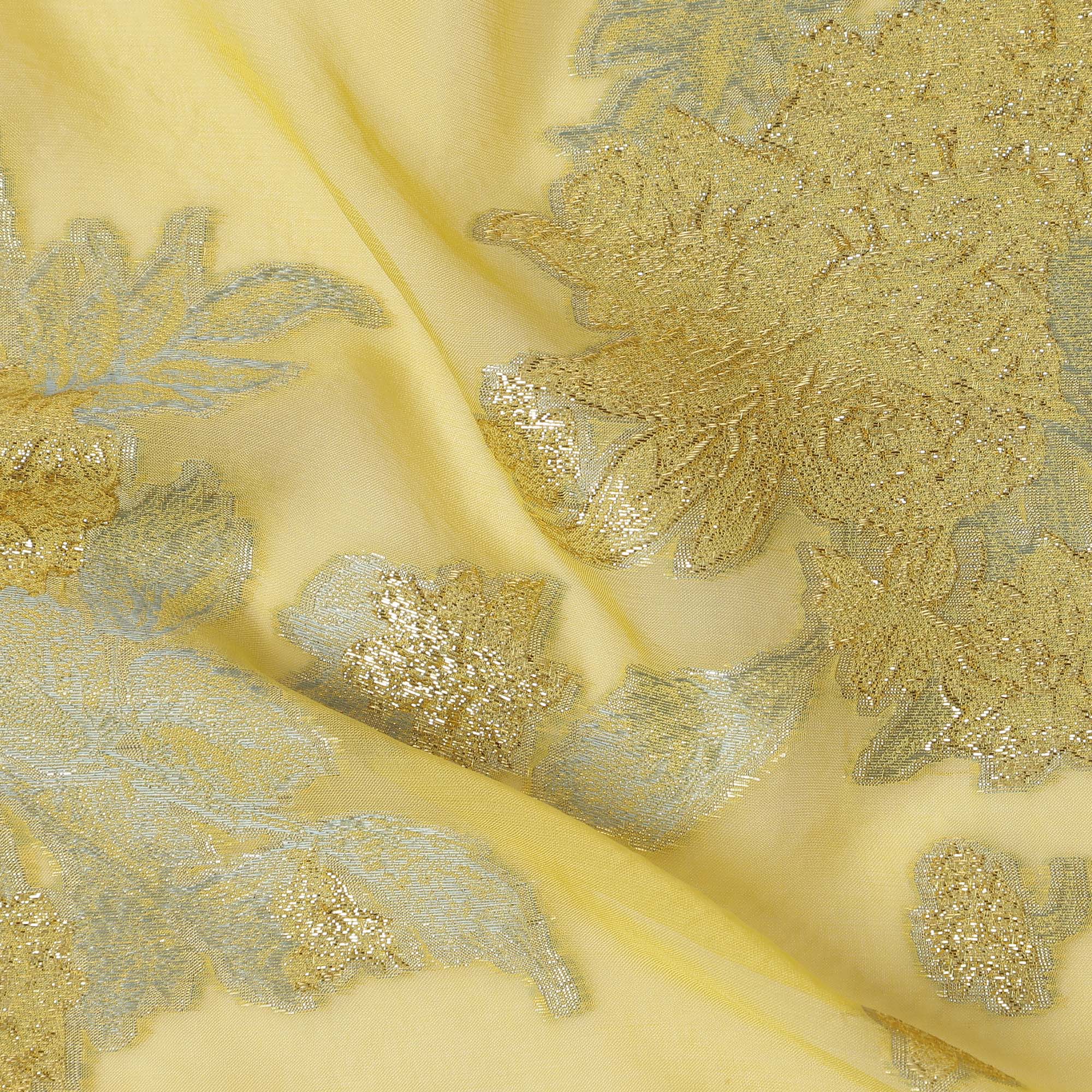 Yellow Floral Pure Silk Chiffon Fabric with Metallic Lurex, 110 Cms Width, South Korea-D25245