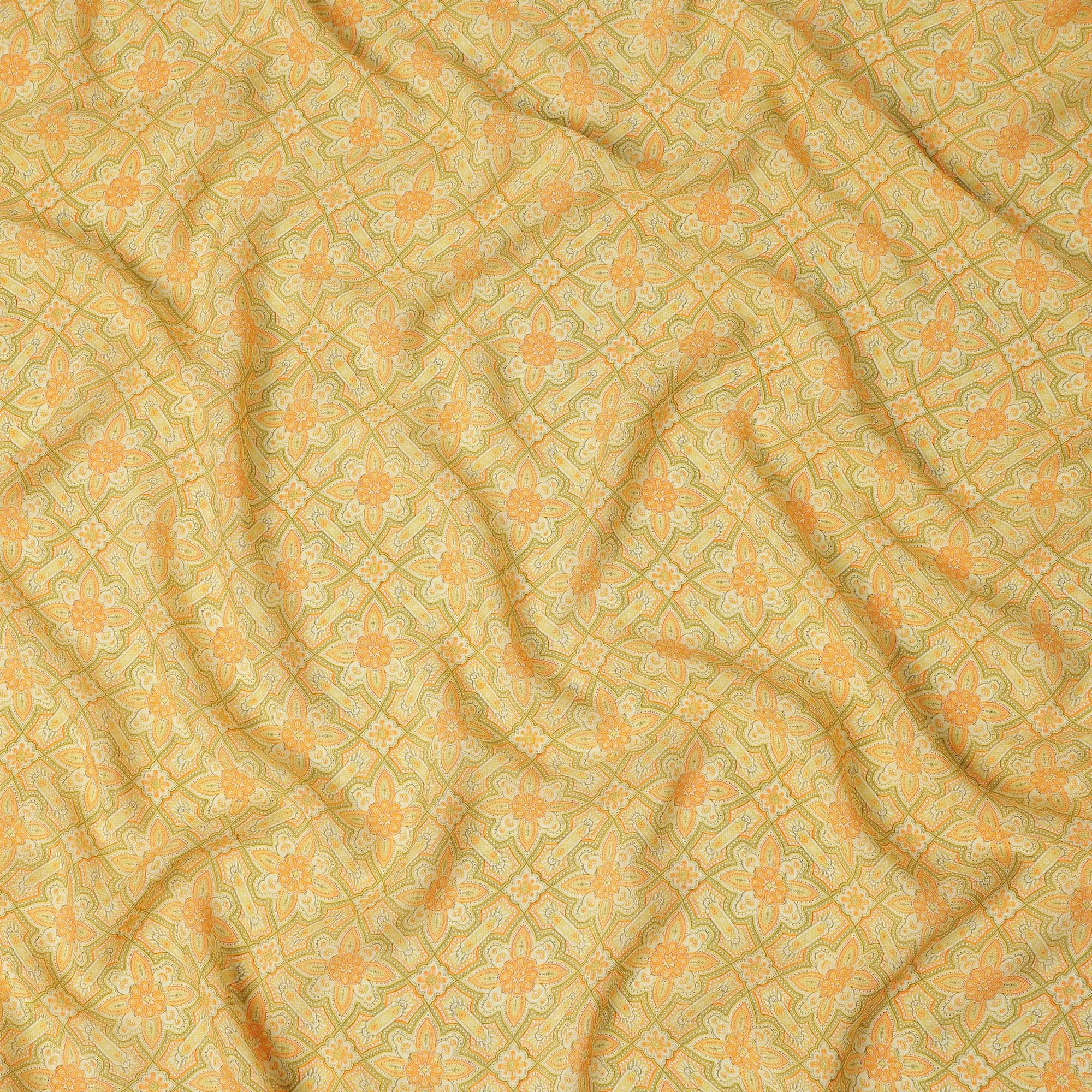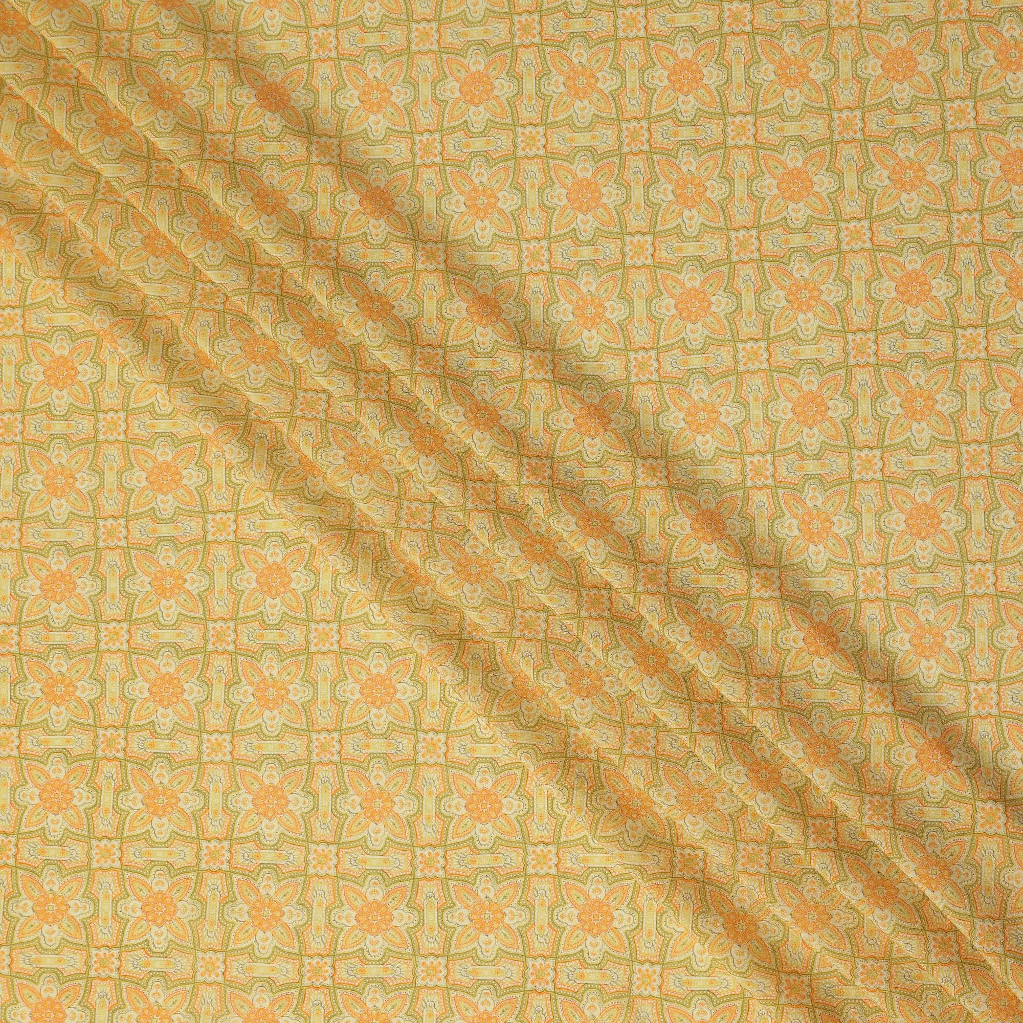 Yellow Geometric Floral Printed Premium Pure Silk Crepe Fabric Vintage Tile Pattern Soft Lightweight Dress Material 110 Cms Width India-D27992
