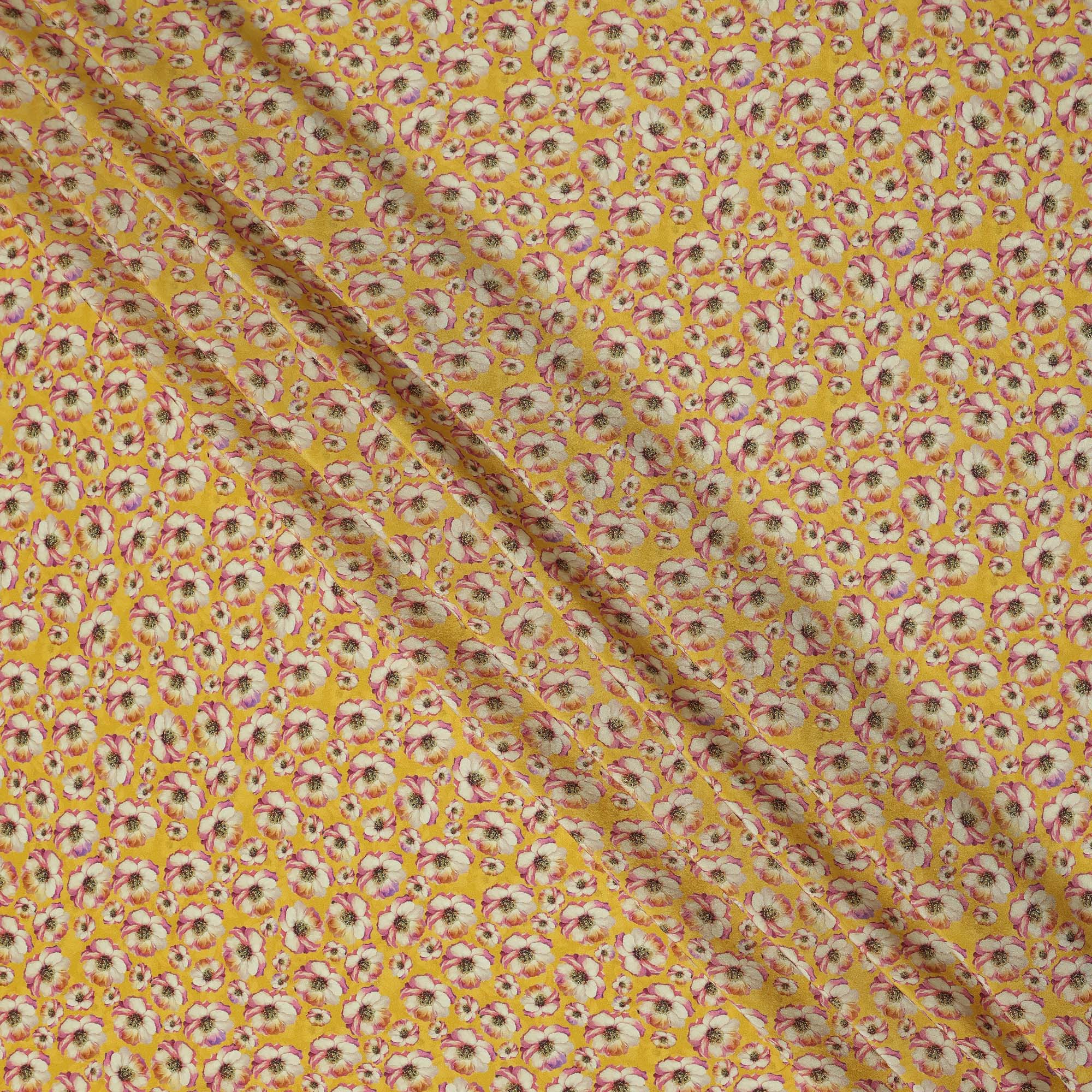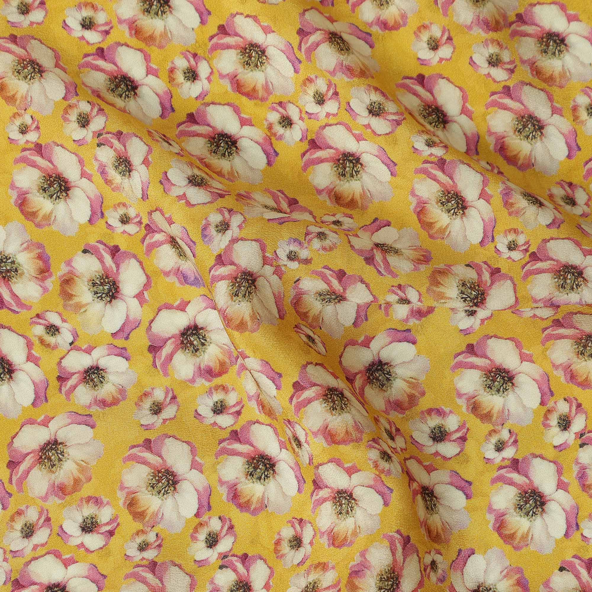 Yellow Small Floral Printed Premium Pure Silk Crepe Fabric Delicate Blossom Design Soft Lightweight Dress Material 110 Cms Width India-D28004